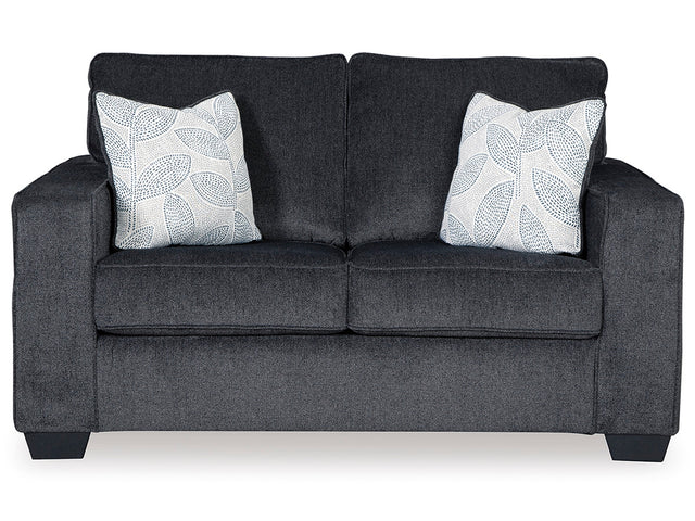 With the rich color of the plush chenille upholstery fabric along with the thick supportive box style back and seating cushions, the “Altari-Slate” upholstery collection offers you the ultimate in comfort without sacrificing the stylish contemporary design you’ve been looking for. The sleek track arms and straight-line design is sure to feel at home in any living room environment.