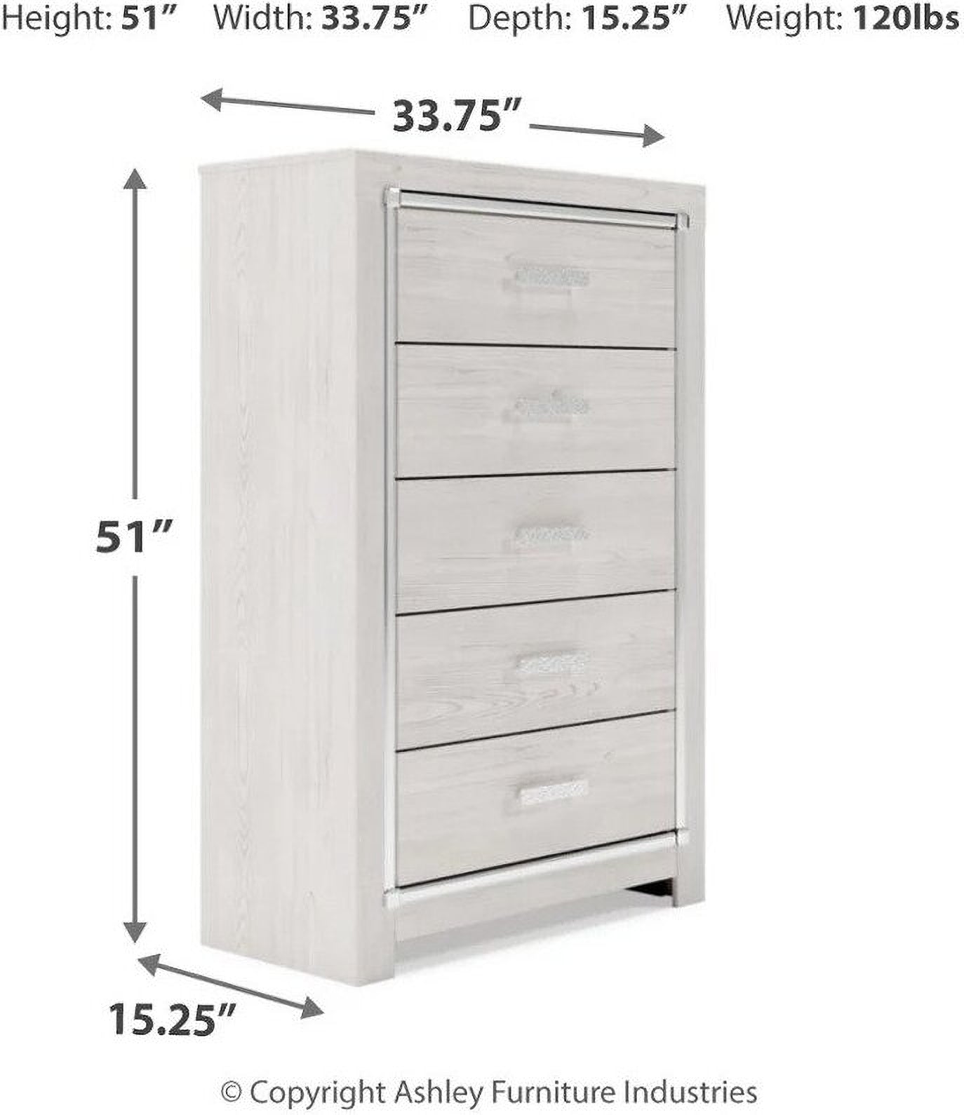- Chest: 33.7"W x 15.31"D x 51.02"H