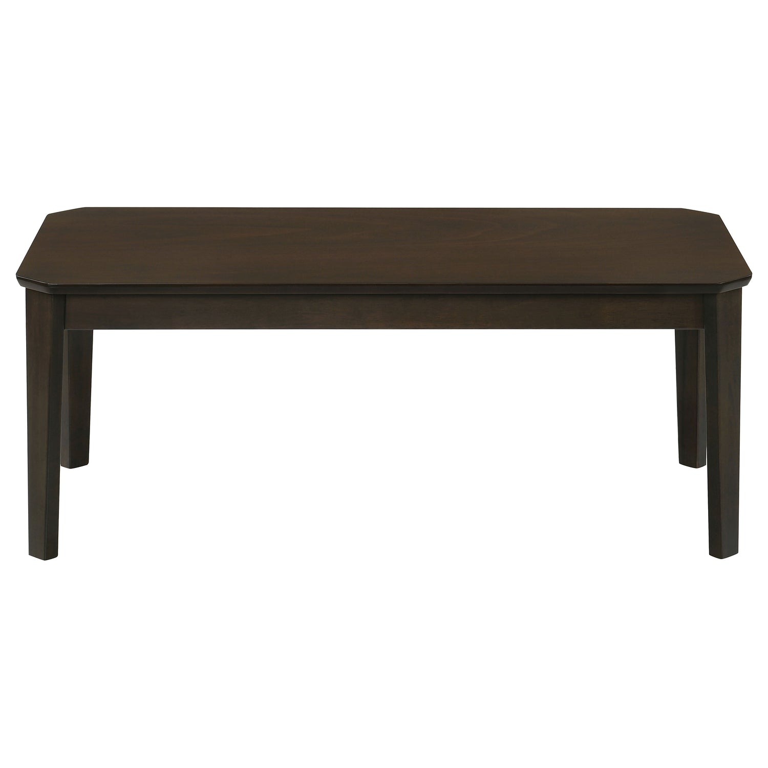 Casual style and simple lines enhance this three-piece occasional table set. Complete with a coffee table and two end tables, each furniture piece offers a rich, dark brown finish that lends a traditional flair. A smooth tabletop also features notched corners that soften the edges. Slim and straight legs extend to the floor and offer a subtle tapered foot. Place this coffee table and two end tables in a compact living room space for a touch of warmth and class.