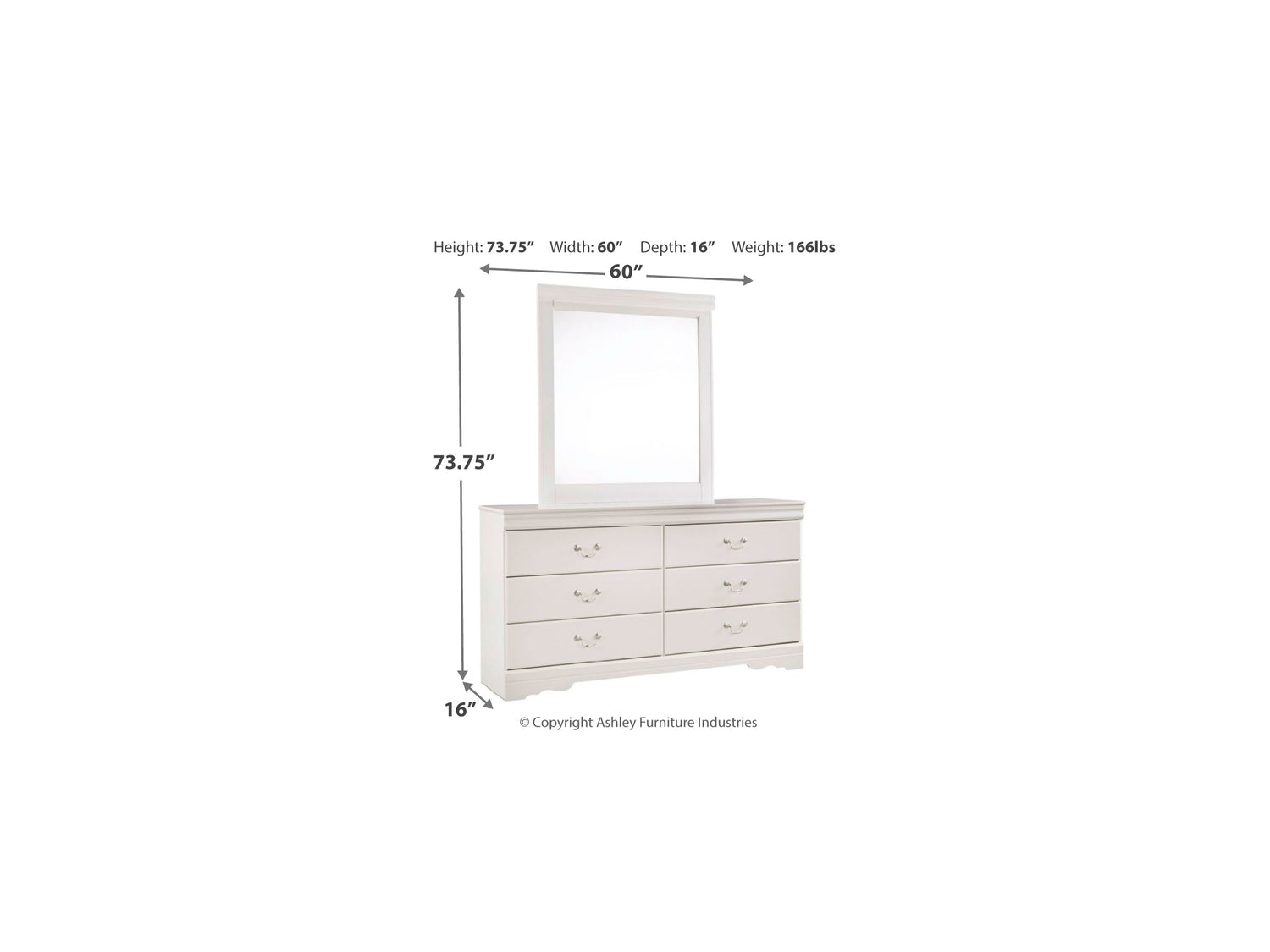 Anarasia White Queen Sleigh Headboard, Dresser And Mirror is backordered and will ship as soon as it is back in stock.
