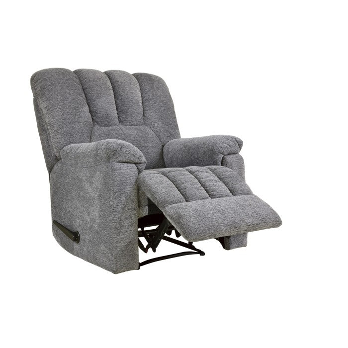 Your downtime can transform into a soothing experience thanks to the annaliese collection, which provides you with a seat that you can call your own. the gray chenille fabric covers the roll-contoured seats as well as the plush arms, both of which take your degree of comfort to a whole new level thanks to their plushness. a simple pull on the lever action handle will engage the mechanism that allows you to recline, transporting you from a seated position to a reclined posture in a single effortless motion.
