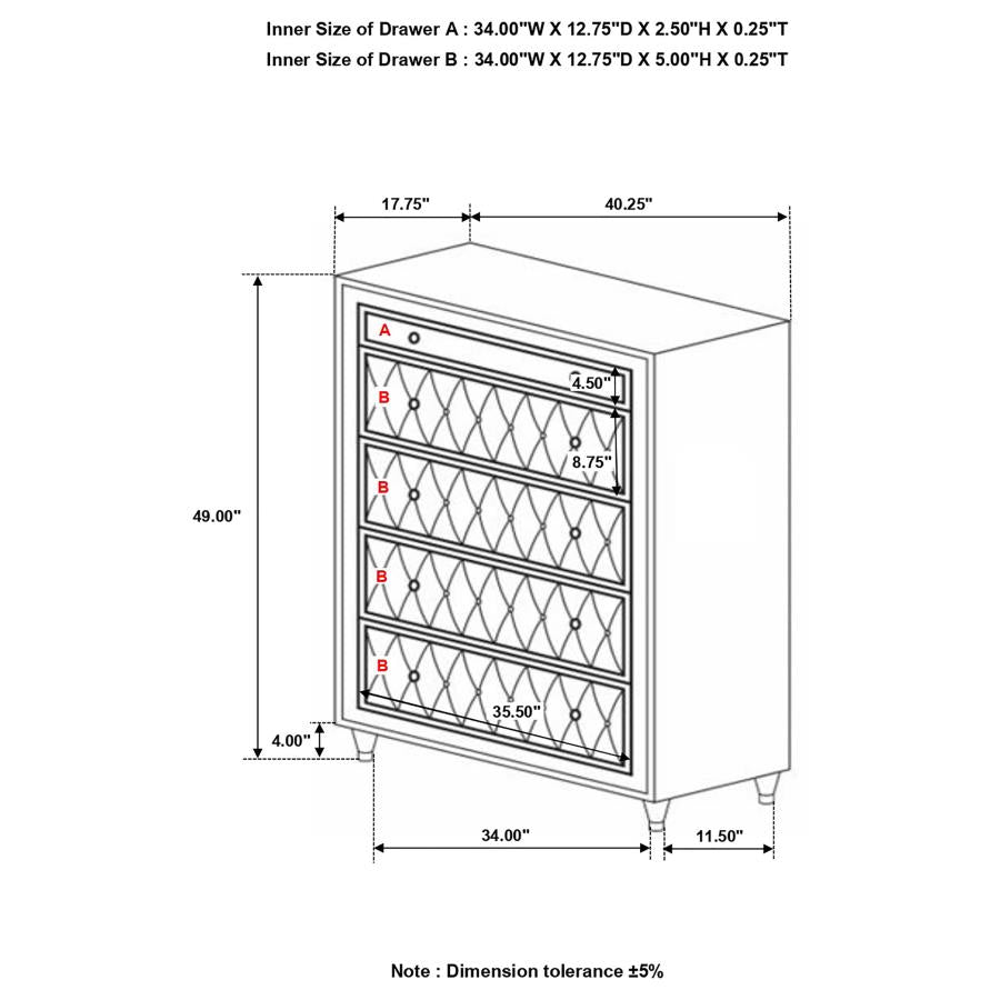 - Item Name: Antonella 5-drawer Bedroom Chest Ivory and Camel