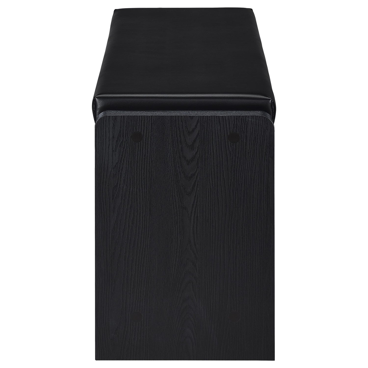 Make your entryway or garage both functional and stylish with this versatile storage bench, designed to keep your space organized. Featuring a foam cushion upholstered in sleek black faux leather, this bench offers a comfortable seat while you put on or take off your shoes. The engineered wood frame, finished with an eco-friendly laminate, offers durability with a modern appeal. The storage includes a pull-out drawer, an adjustable shelf, and an open compartment, perfect for organizing shoes, bags, or other essentials. This bench ensures all your entryway necessities are easily accessible.