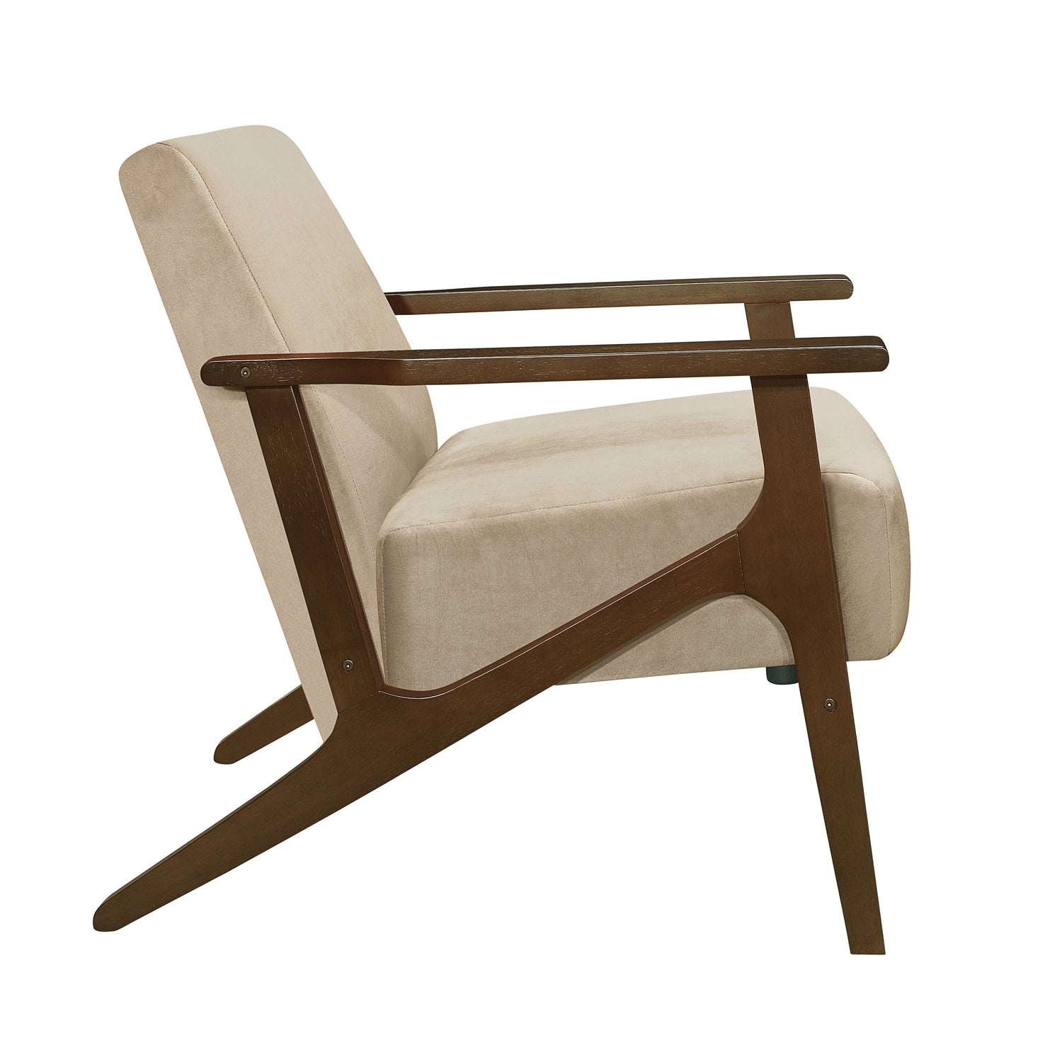 The form of the frame in the august collection harkens back to an era when understated elegance was the height of fashion. the dark walnut finish on the wood arms and legs serves to draw attention to the light brown velvet covering, which features a sleek and angular design.