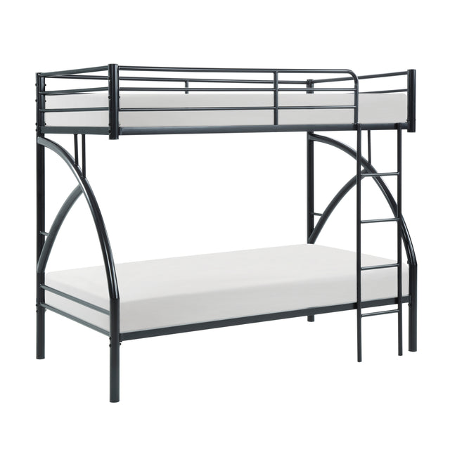 The eye-catching modern lines of the Bailey Collection provides the sleep space you need for your child’s bedroom. The black metal frame of the twin-over-twin bunkbed furthers the decorative versatility of the collection.