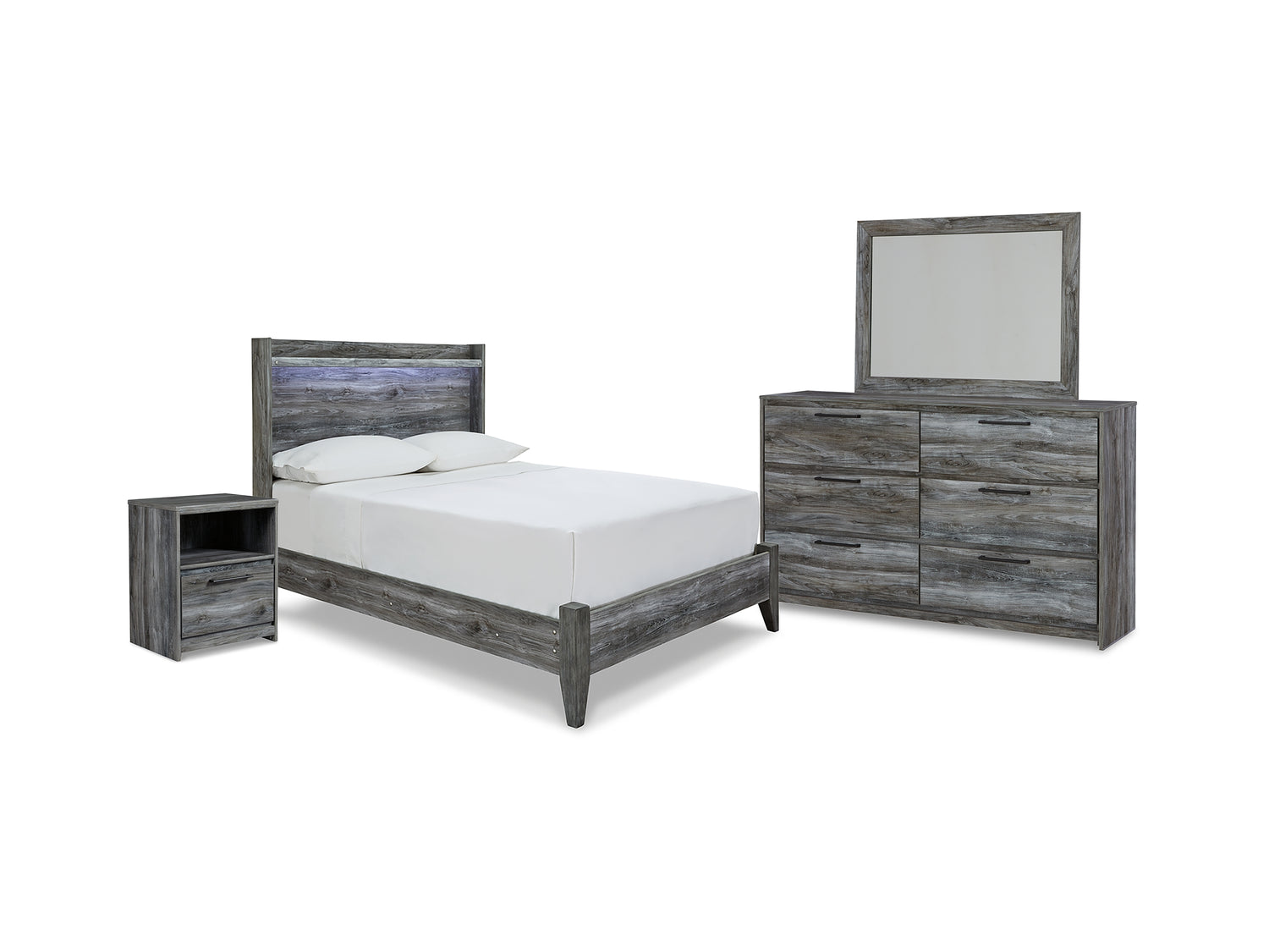 Baystorm Gray Full Panel Bed, Dresser, Mirror And Nightstand