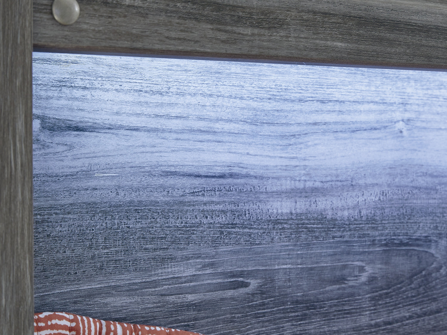 Series Features: Smokey gray finish over replicated Oak grain with authentic touch. Contemporary handles in an antiqued gunmetal finish. Full, Queen and King storage bed option features 6 drawers of storage. Twin storage bed has 5 drawers. Cases feature faux linen finished drawer interiors. Modern bookcase headboard includes a dimming LED light under the shelf. Slim USB charger located on the back of the night stand tops. Side roller glides for smooth operating drawers. Queen and king storage footboard (54S,56S) requires the B100-13 or B100-14 roll slats. Full storage footboard (84S) requires the B100-12 roll slats. Twin (53) and full (87) headboards can attach to a bolt-on metal bed frame B100-21. Mirror (35) has the versatility to mount on the dresser or to the wall horizontally or vertically. Slim profile dual USB chargers located on the back of the night stand top and the side of the headboards. Queen (57) and King (58) headboards can attach to a bolt-on metal bed frame B100-31 or B100-66 respectively. Safety is a top priority, clothing storage units are designed to meet the most current standard for stability, ASTM F 2057 (ASTM International). Drawers extend out to accommodate maximum access to drawer interior while maintaining safety.