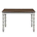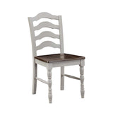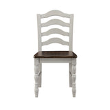 The Bettina 5-piece dining set is a great way to lighten up your dining room or breakfast nook while remaining true to a traditional aesthetic. This set is made up of select woods and veneers for an updated rustic look. The table and chairs are beautifully finished in an antique white and weathered oak for the perfect contrast. The matching chairs feature comfortable wooden seats, slatted backrests, and turned legs that add visual appeal. This set will suit your dining needs.