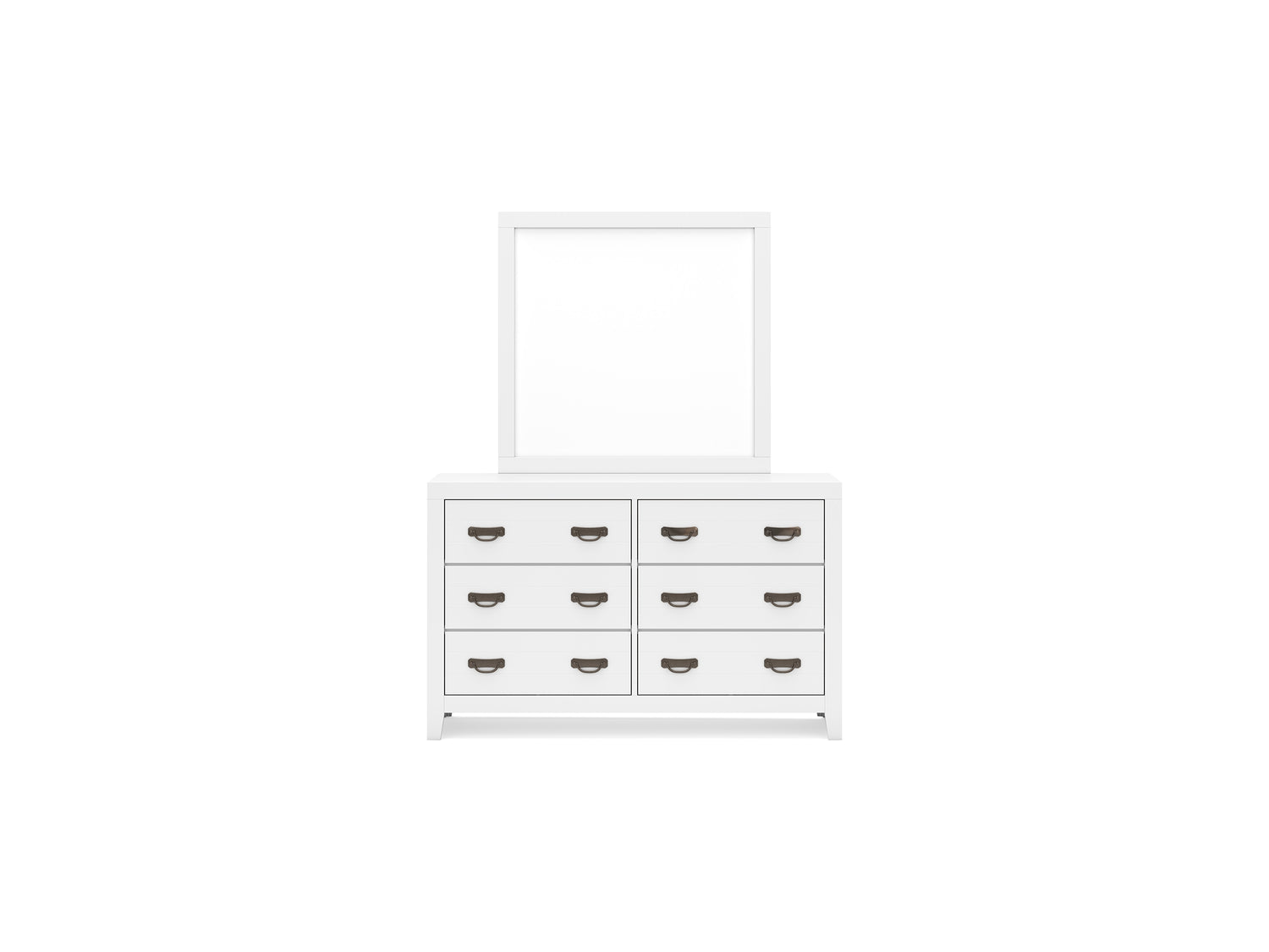 Series Features: Casual Contemporary design. Made with hardwood solids, Okoume veneer, and MDF substrates. Clean white finished cases with contrasting dark hardware. Drawers feature English dovetail construction, a clean wood grain laminate interior and metal center guides. Cases offer a clean-lined silhouette with planked effects on drawer fronts. Contemporary panel bed with matching planked effects on headboard and footboard.