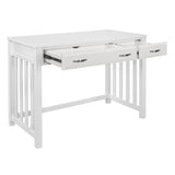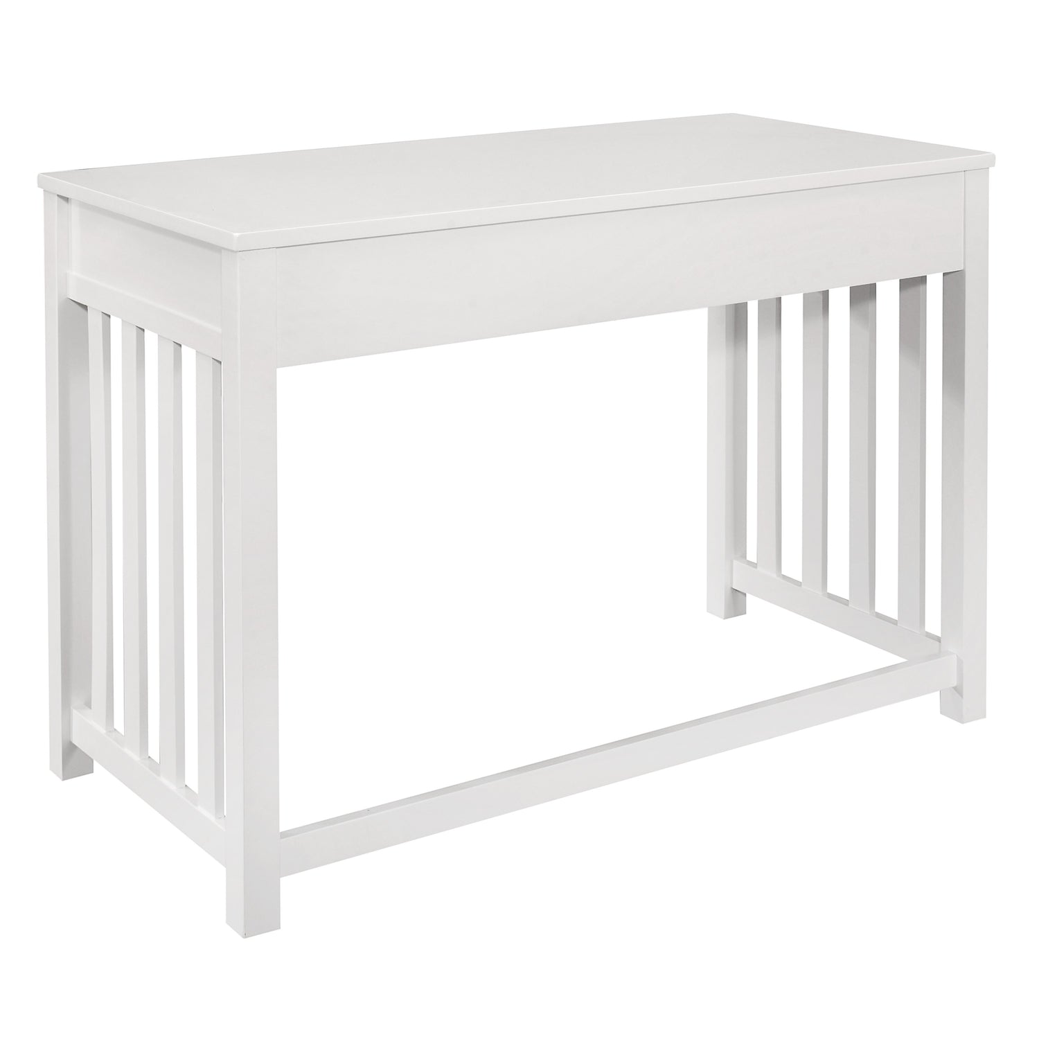 The inclusion of the blanche collection will create a platform that puts you in a position to be successful by allowing you to carry out the tasks of your workday in an effective manner within an environment that makes it possible for you to achieve your objectives. the white surface is accented with satin nickel bar pull hardware, guaranteeing that the overall appearance of the series is an ideal match for your individual tastes in terms of decoration. the desk provides you with convenient access to your desktop accessories by including a drawer for your keyboard as well as a smaller drawer.