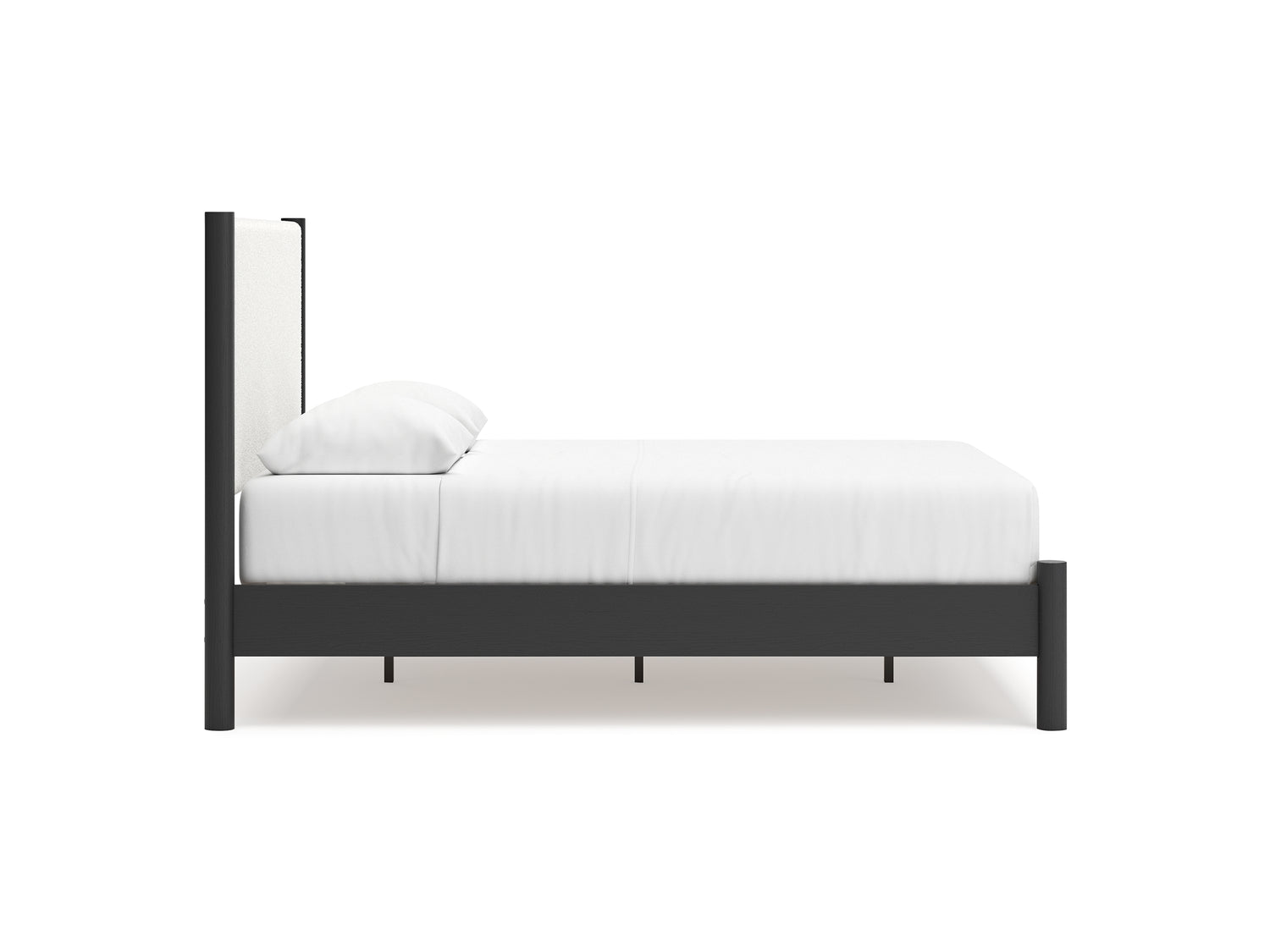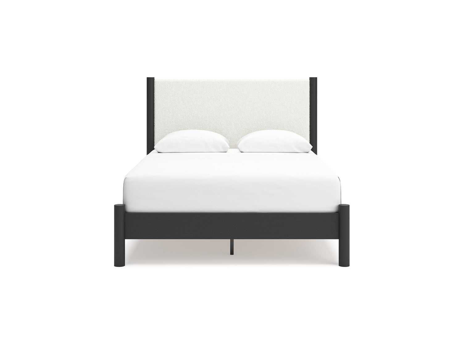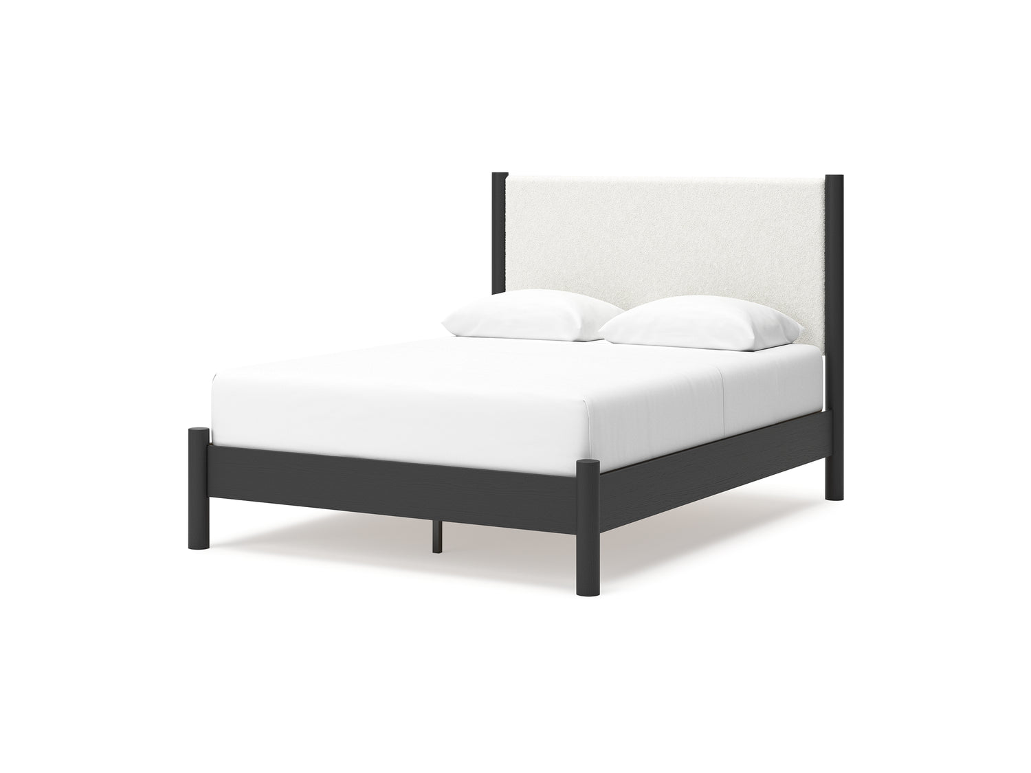 Cadmori Black/White Queen Upholstered Panel Bed, Dresser And Mirror