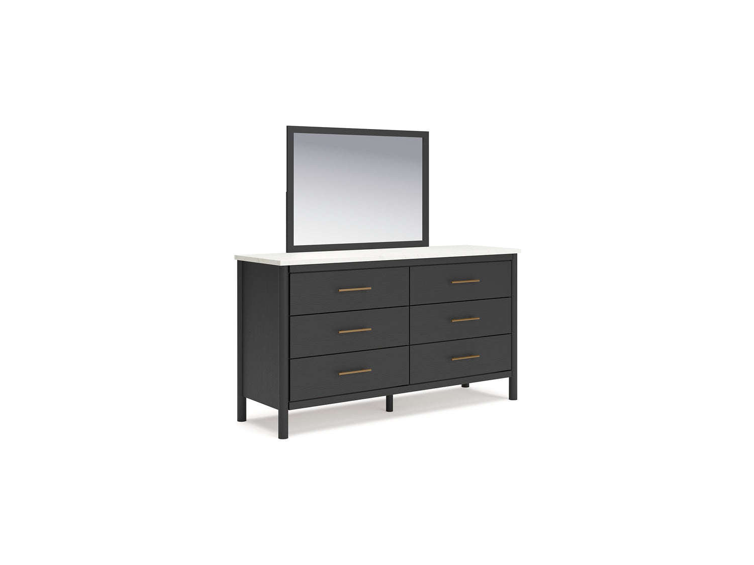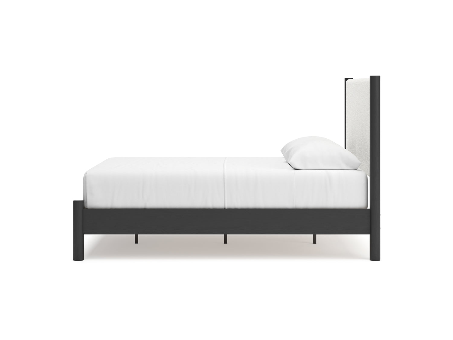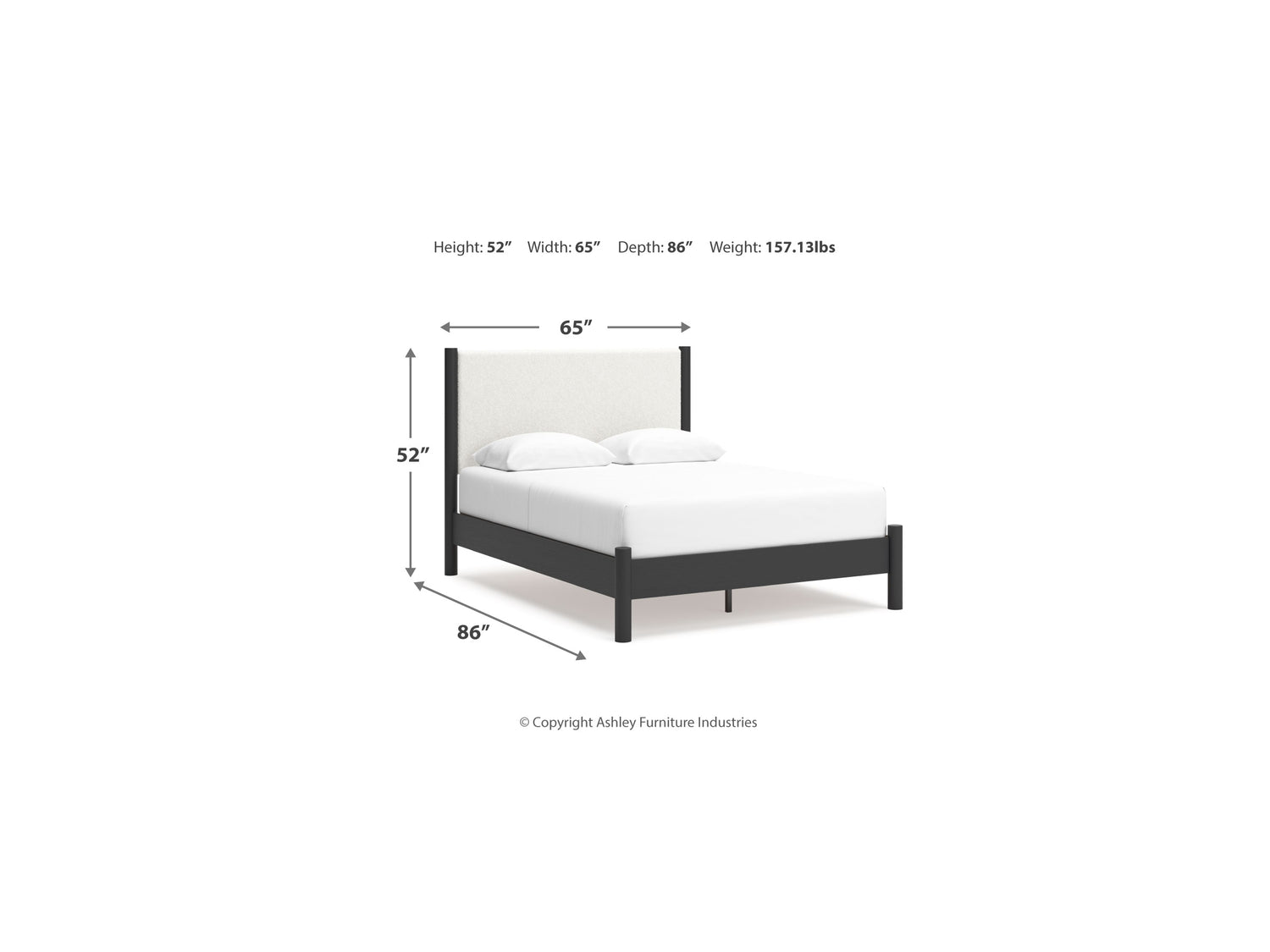 Cadmori Black/White Queen Upholstered Panel Bed, Dresser And Mirror