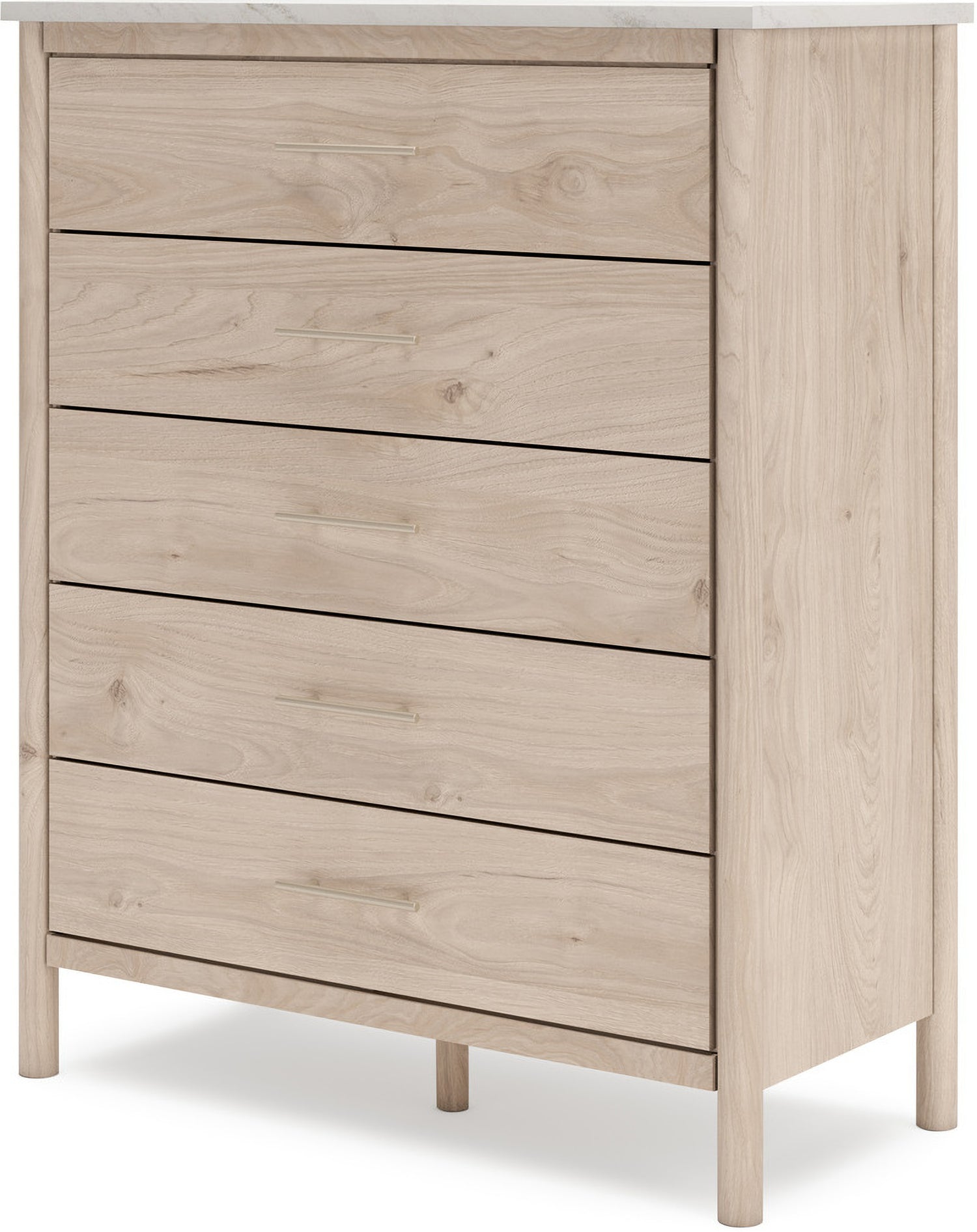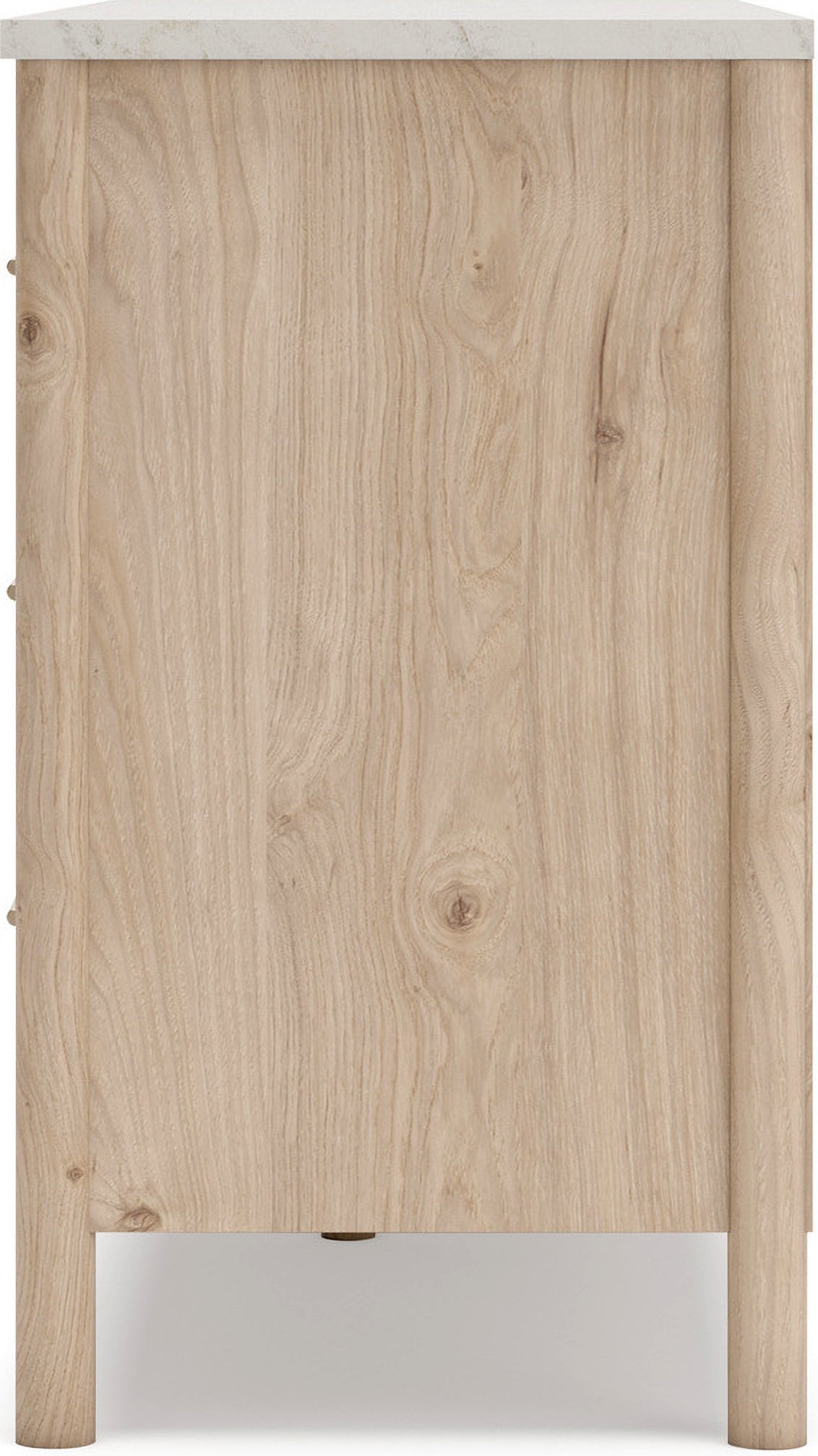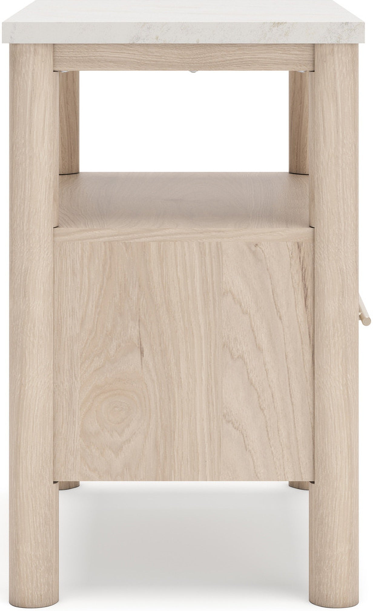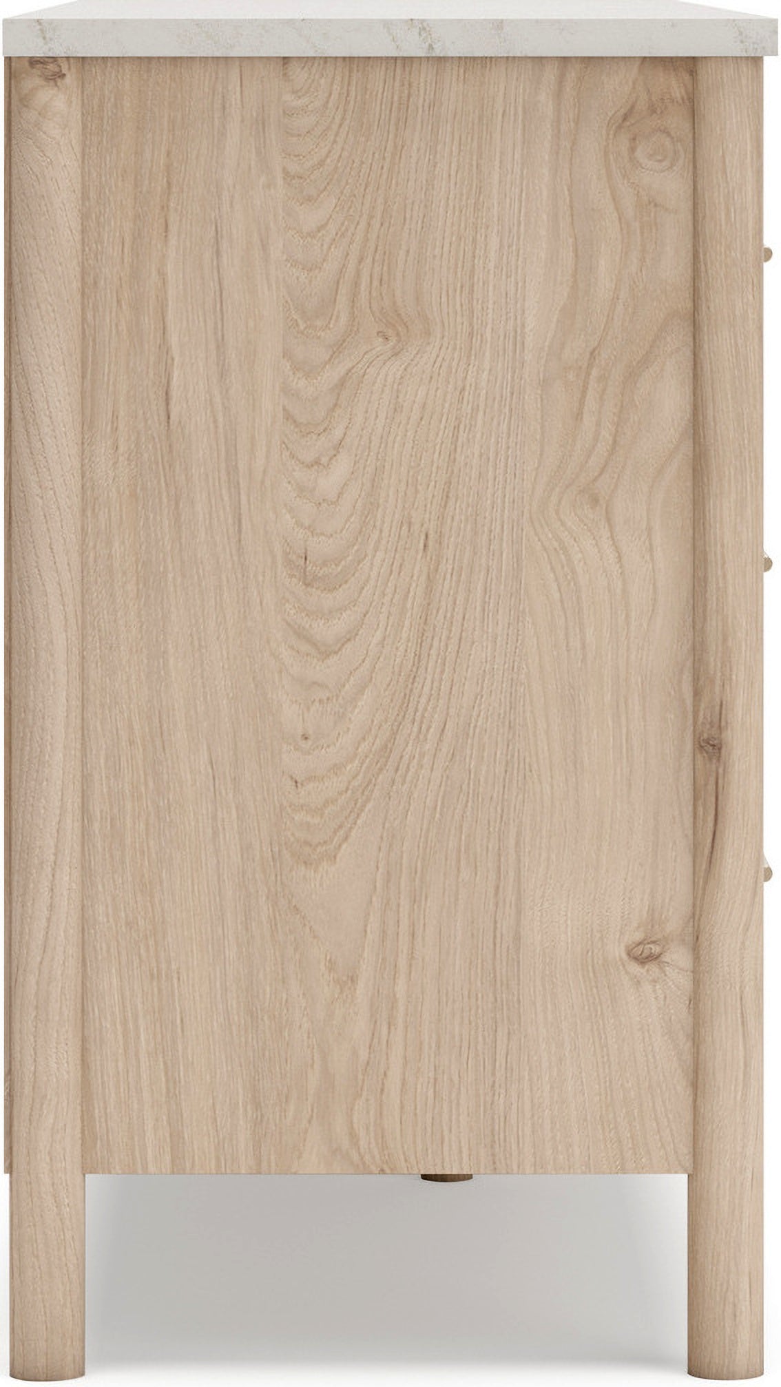 • Includes upholstered panel headboard, panel footboard with rails and roll slats, nightstand, dresser, mirror|Made with engineered wood (MDF/particleboard/plywood) for the right balance of affordability and durability|Smooth, light finish with replicated oak grain|Replicated marble top|Textured polyester upholstery|Handle with champagne colored finish|Round post legs|Storage cubby|Bed does not require a foundation/box spring|smooth-gliding drawers|Drawer interior is lined with a faux linen laminate for a clean, finished look|Mattress available, sold separately|Built-in ambient lighting under top|Safety is a top priority, clothing storage units are designed to meet the most|USB-C and wireless charging options|Assembly required