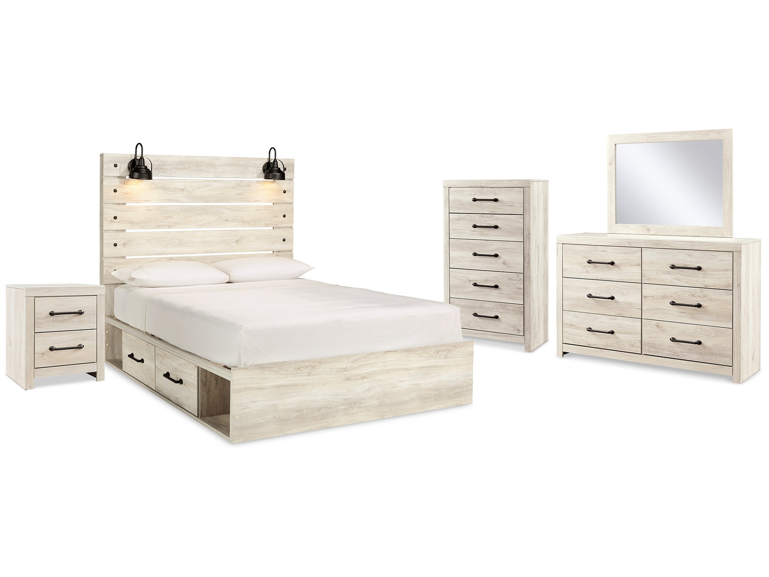 Cambeck Whitewash Queen Panel Storage Bed, Dresser, Mirror, Chest And Nightstand