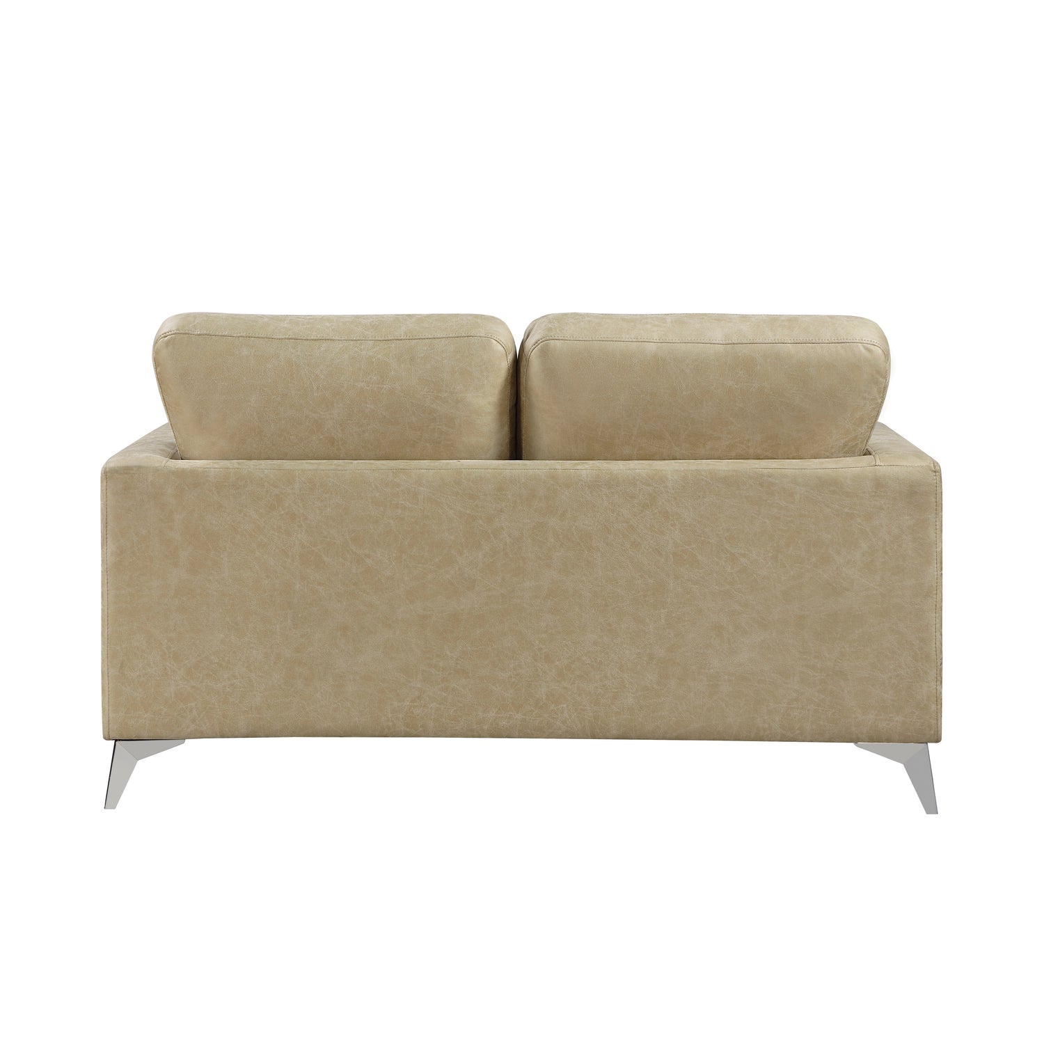 Elegant modern styling is achieved in the design of the Cazon Collection making its addition to your living room a perfect complement to your home’s decor. The lines of love seat’s profile create definition in their simplicity - from the seat cushions to the polished silver finish of the support legs. The collection is covered in sand-hued polished microfiber.