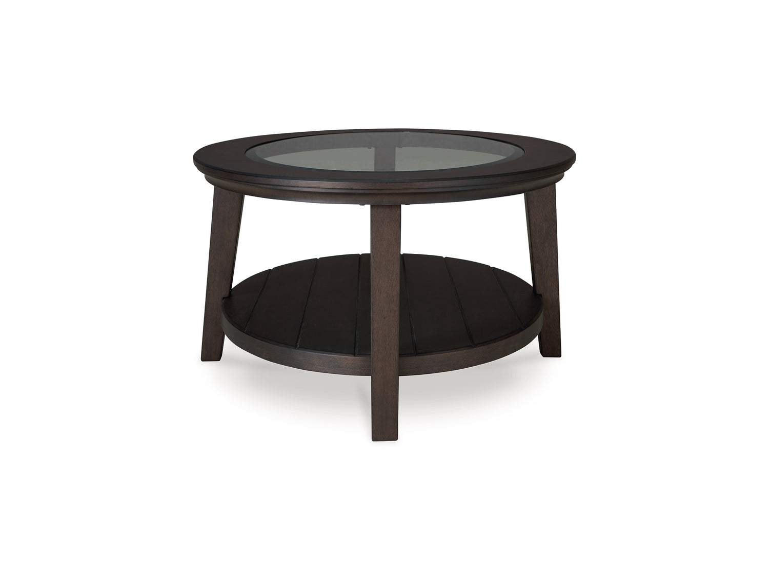 Series Features: Timeless casual styling. Made with solid Acacia wood, Cherry veneer and MDF substrates. Finished in a rich brown cherry stain. Each table features canted legs with a classic tapered shape and thick lower shelf with a planked look. The cocktail table offers a formal appeal with its inset tempered glass top.