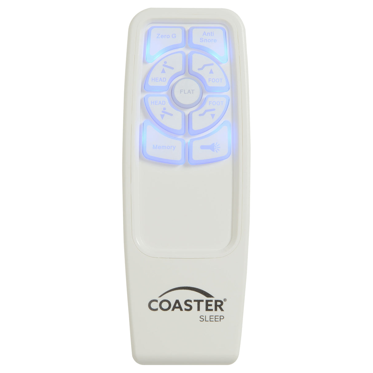 This adjustable bed base offers complete relaxation and support with various ergonomic positions.Upholstered in a two-tone off-white and grey upholstery, this bed base lends an understated look and works with existing color palettes.A wireless remote offers customized adjustments with a backlit soft-touch controls on its wireless remote, making it easy to find at night.Supporting the adjustable piece is a metal base support coated in a black finish.This raised bed base also offers a spacious area beneath to keep items and boxes stored.