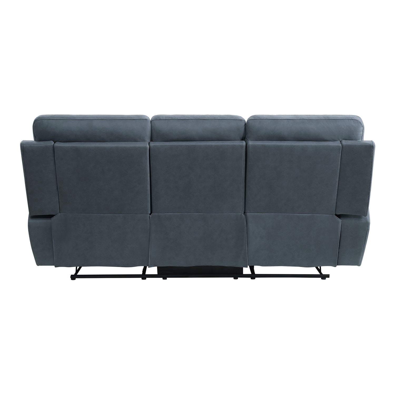 The modern profile of the Clifton Collection serves to provide comfort, function and style to your home’s casual living room. The blue polished microfiber that covers the plush arms and seating of the sofa lends to the decorative versatility of the collection. The sofa features dual reclining ends as well as a drop-down center seat back with cup-holders and tabletop. Manual motion mechanisms operate with the pull of a side-mounted tab, that once engaged, take you from seated to reclined in an easy motion.