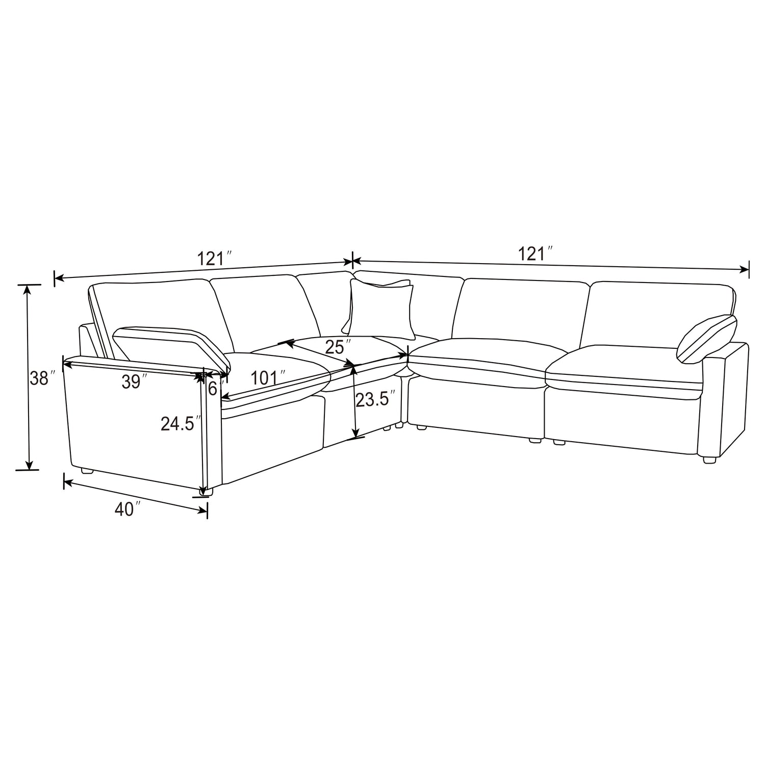 Transform your living space with the versatile 5-piece modular sectional, designed to offer a perfect blend of comfort, style, and customization. This sectional features three power reclining pieces and two non-reclining pieces, allowing you to create your ideal seating environment. With the option to add additional power or non-power armless chairs, you can customize the layout to suit your room and preferences. Enjoy the plush comfort of premium down-like filled cushions and a sleek, modern design that enhances any decor. Experience the ultimate in relaxation with the power reclining pieces, featuring a 4-inch wall-hugging design for full recline without needing excessive space.