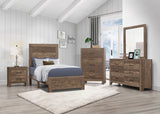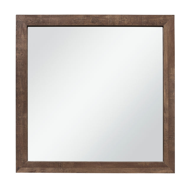 The style of the corbin collection is created by combining contemporary lines and rustic design in equal parts. in order to achieve the appearance of real wood, an embossed faux-wood veneer has been given a finish that is of a rustic brown color. the profile of the mirror's frame is defined by subtle framing, further contributing to the unrestricted design of the collection as a whole.