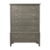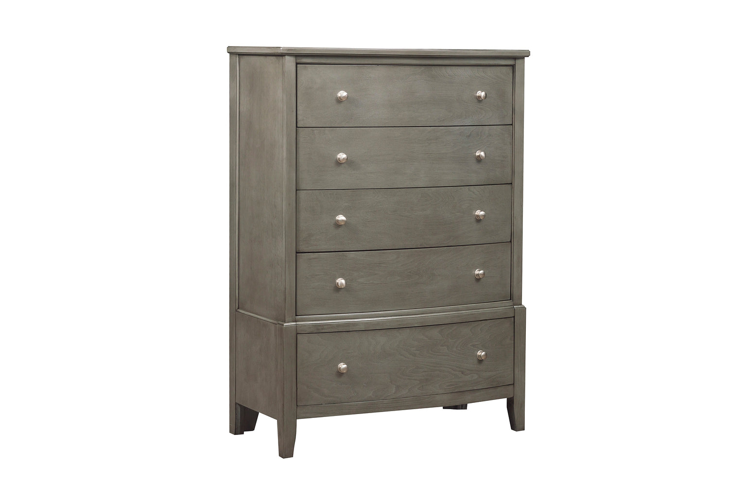 The cotterill collection will be a functional and adaptable addition to your bedroom because of its transitional design that looks good in a variety of different settings for decorative purposes. the chest has a gray finish over birch veneer, and this finish significantly highlights the wood's grain. the chest also has nickel hardware that punctuates each drawer front, and this hardware is the perfect accent.