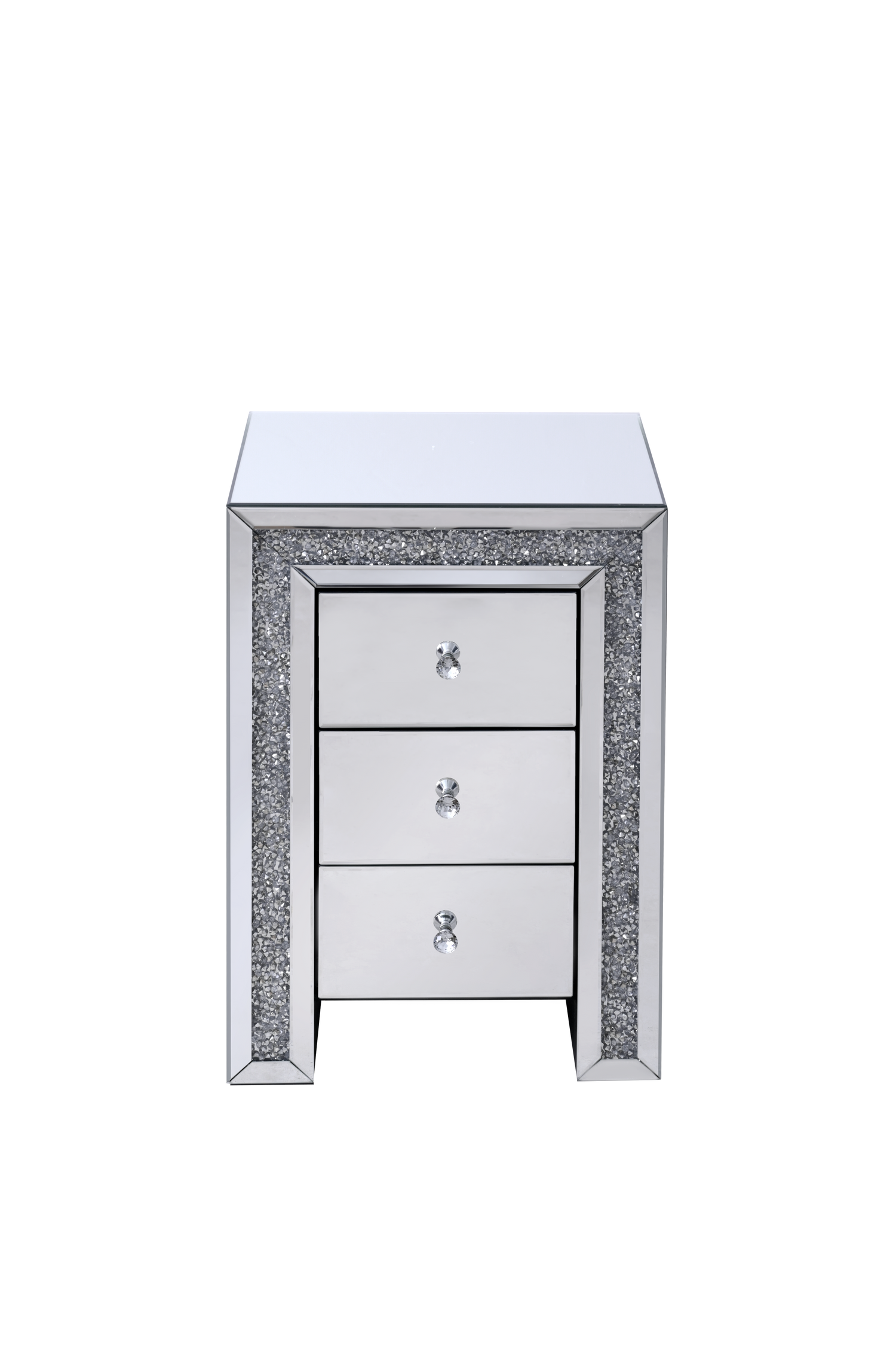 Elevate your bedroom decor with the VANITII Crushed Diamonds LED Bedside Table, where contemporary functionality meets dazzling style. This luxurious nightstand features a sparkling crushed diamond facade that adds instant glamour to any sleeping space. The built-in white LED lighting with adjustable brightness creates the perfect ambient glow for nighttime reading or creating a relaxing atmosphere. With three spacious drawers, you get generous storage for bedtime essentials while maintaining a sleek, uncluttered look.