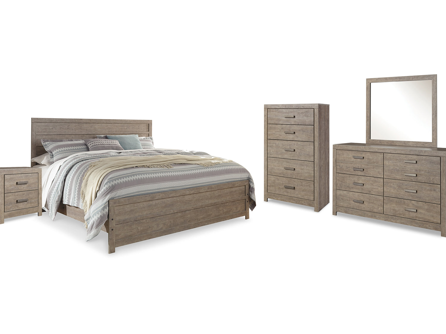 Culverbach Gray King Panel Bed, Dresser, Mirror, Chest And Nightstand
