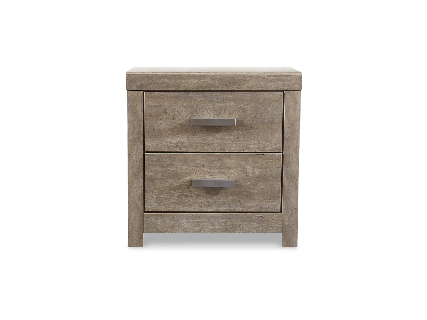 Series Features: A sophisticated modern chunky look with large satin nickel colored hardware. Warm gray vintage finish with subtle pearl effect over replicated cherry grain. Mouldings across headboard give a thick planked look. Side roller glides for smooth operating drawers. Drawer interiors finished with a replicated linen design. Slim USB charger located on the back of the night stand tops. Safety is a top priority, clothing storage units are designed to meet the most current standard for stability, ASTM F 2057 (ASTM International). Drawers extend out to accommodate maximum access to drawer interior while maintaining safety.