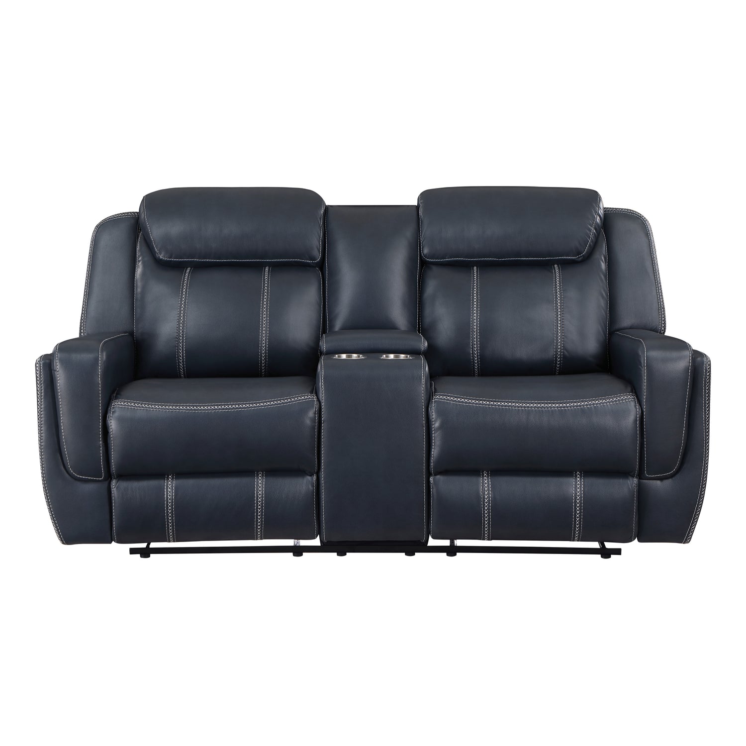 Littleton Blue Double Reclining Love Seat with Center Console, Receptacles and USB Ports