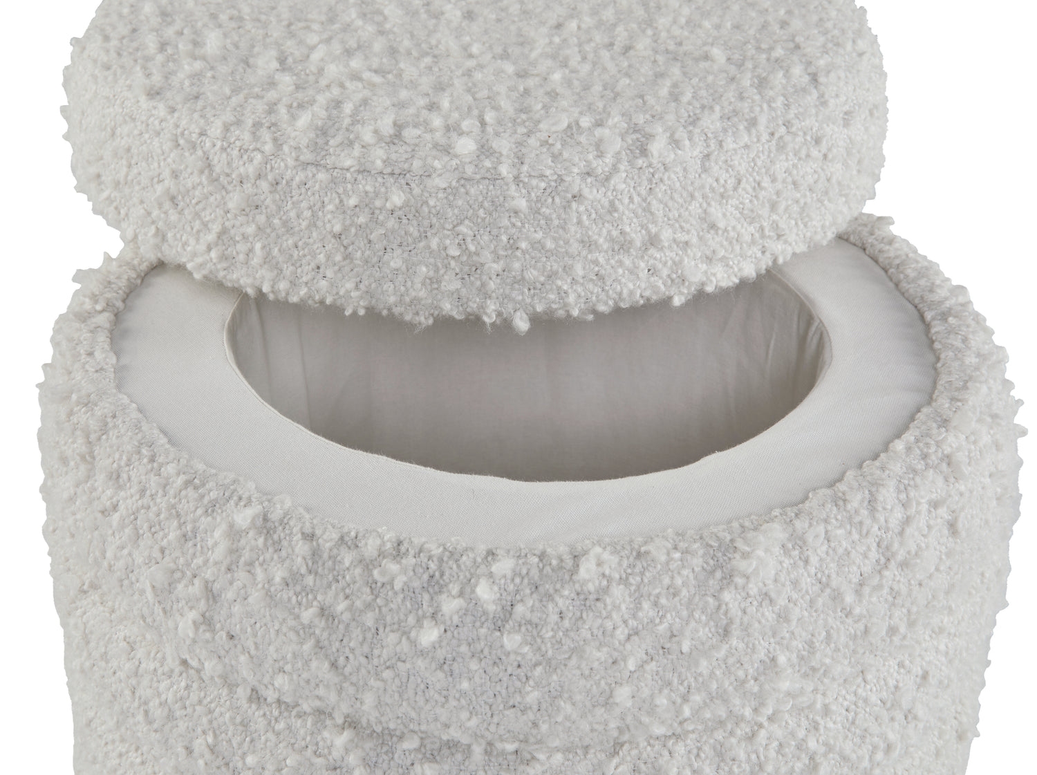 Duntler Ivory Storage Ottoman is backordered and will ship as soon as it is back in stock.
