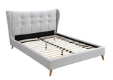 Every element from the wing back styled headboard, light gray upholstery, and button tufting exudes timeless elegance and contemporary comfort. The fully upholstered bed features a distinct and sophisticated headboard designed with wing back and button tufted details. Wooden leg gives a sturdy support but also a cozy vibe to the bed. Fashioned with a chic and elegant look, the Duran Bed will create a relaxing sleeping environment for you after a long day at work.