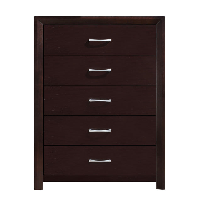 The edina collection's primary objective is to contribute to the development of a more modern look within your bedroom. the unpretentious lines of this chest are emphasized by the espresso finish, and the chest's hardware is accented with a silver finish to give a contemporary appearance.