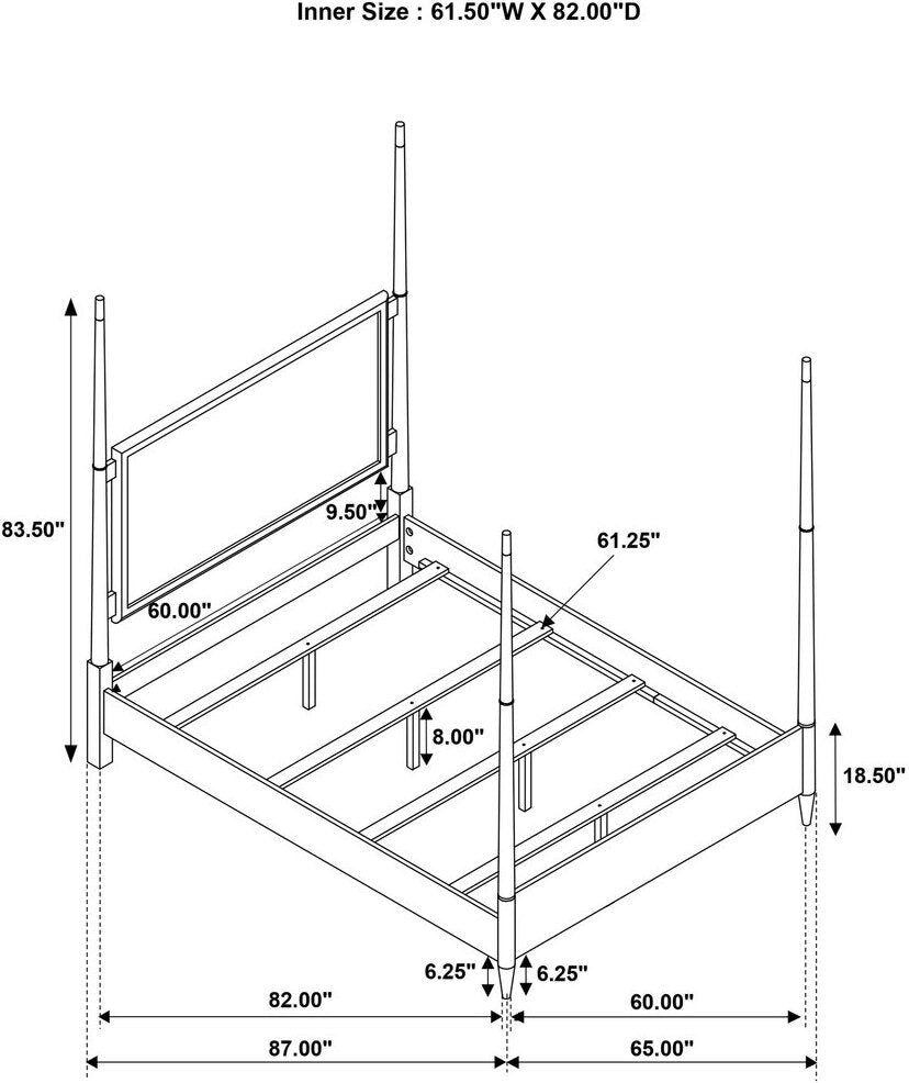 - Queen Bed: 65"W x 87.25"D x 83.5"H