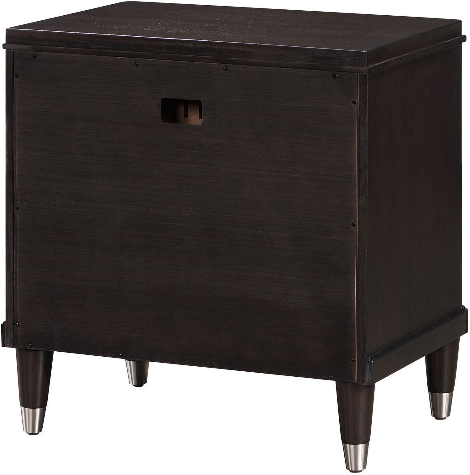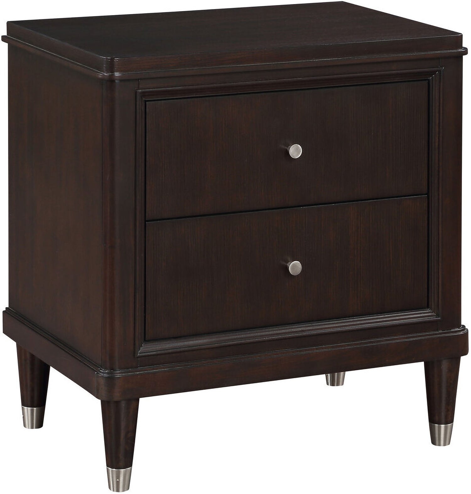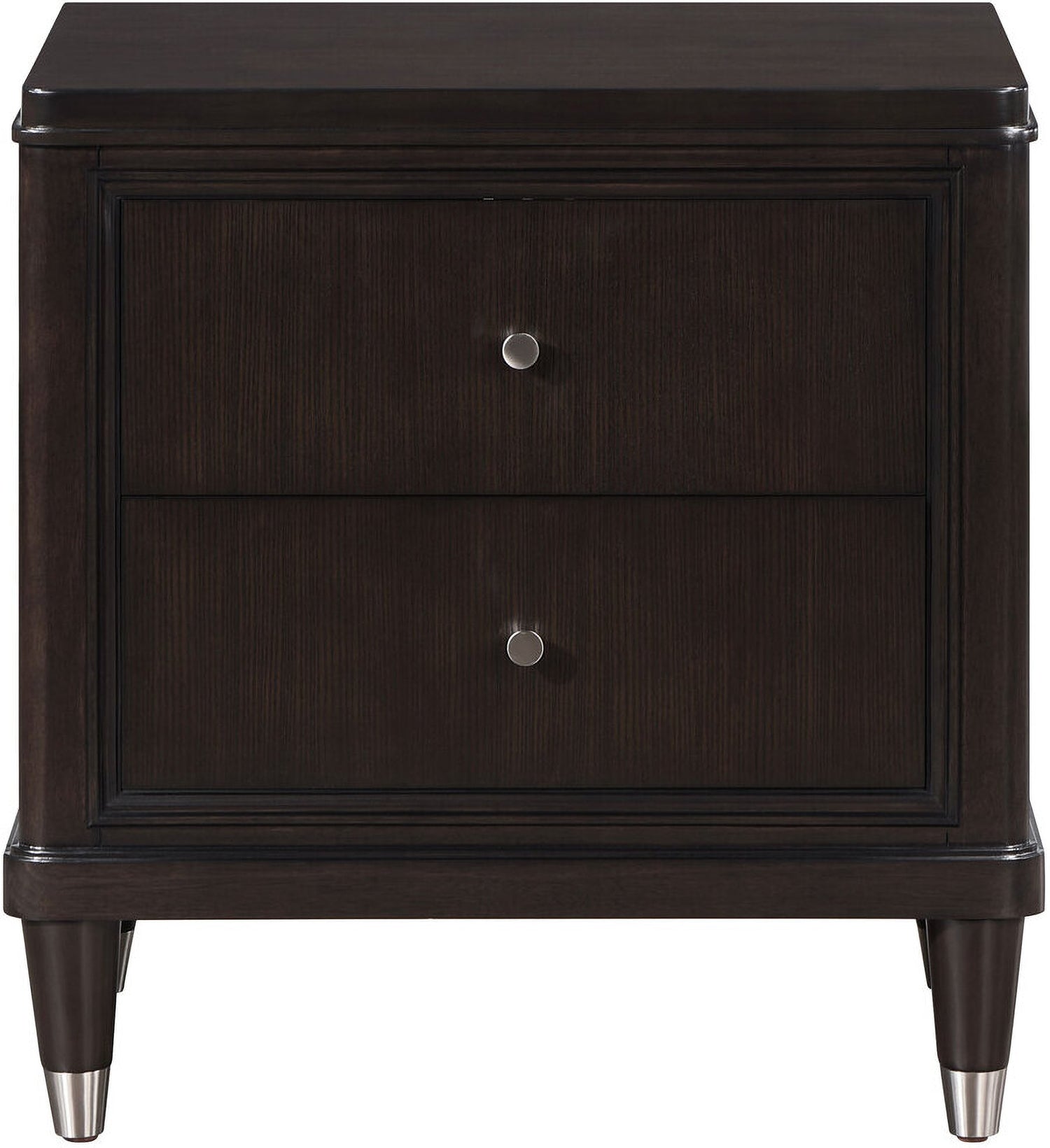 - A contemporary two-drawer nightstand offers stylish bedside storage and a refined look and feel