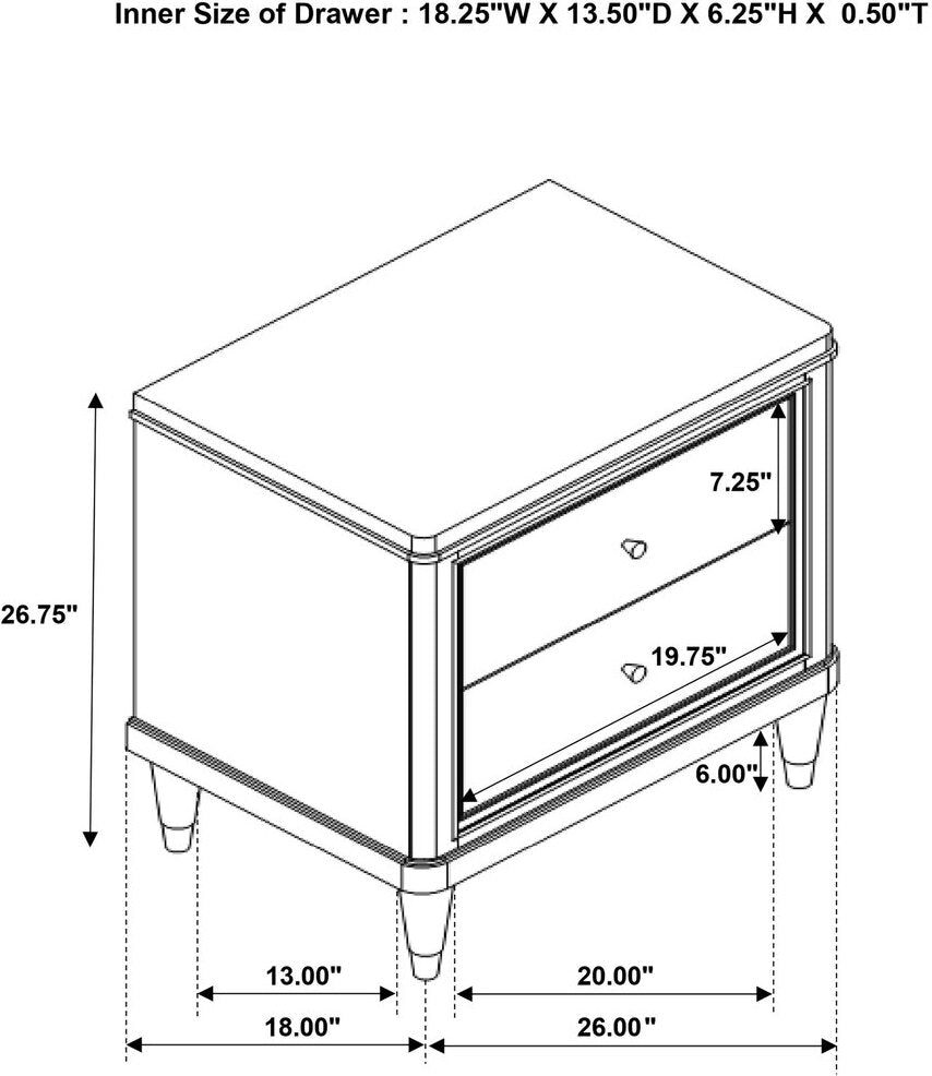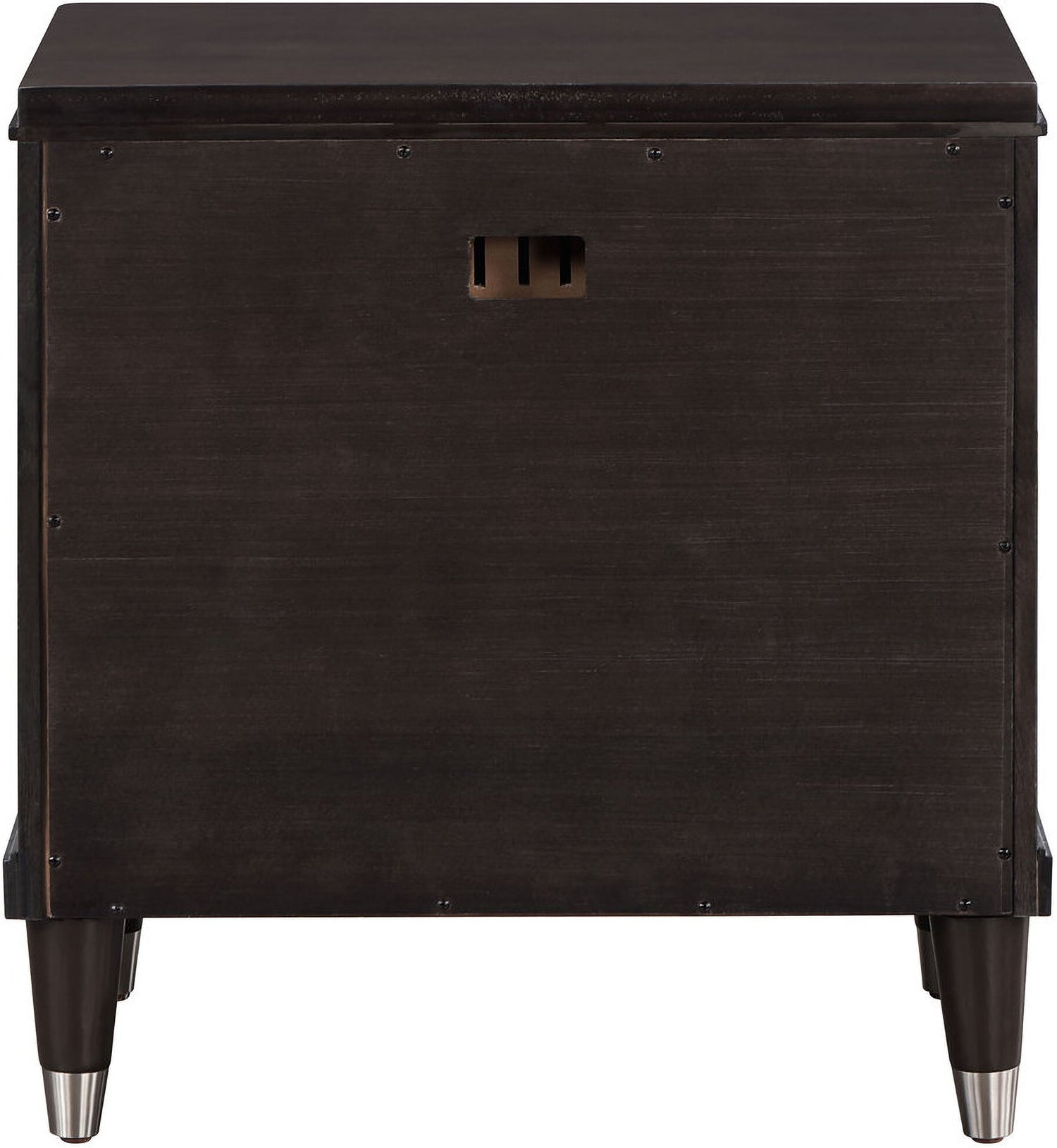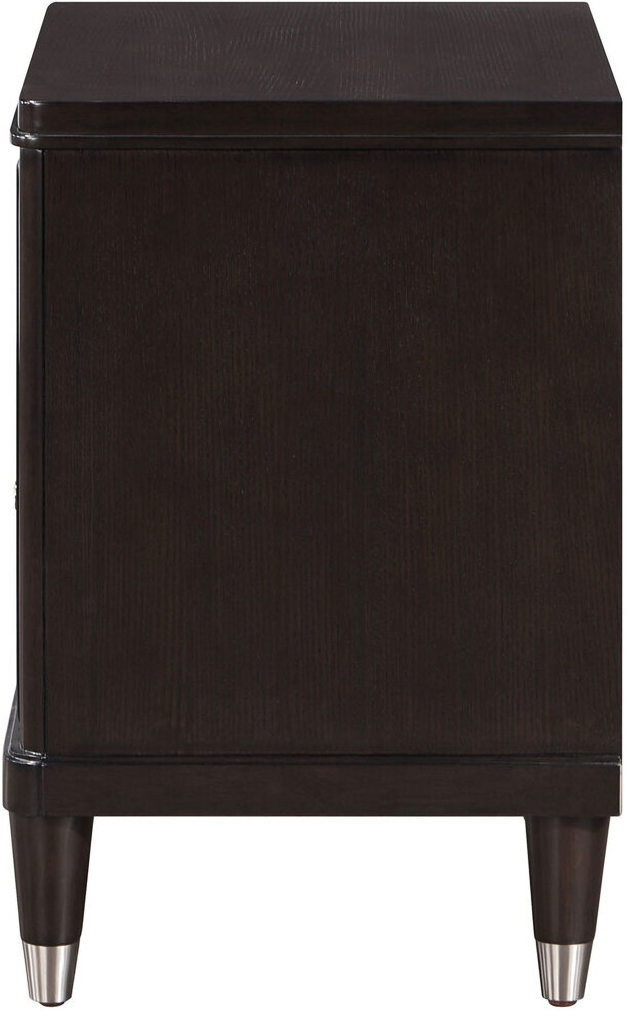 - A contemporary two-drawer nightstand offers stylish bedside storage and a refined look and feel