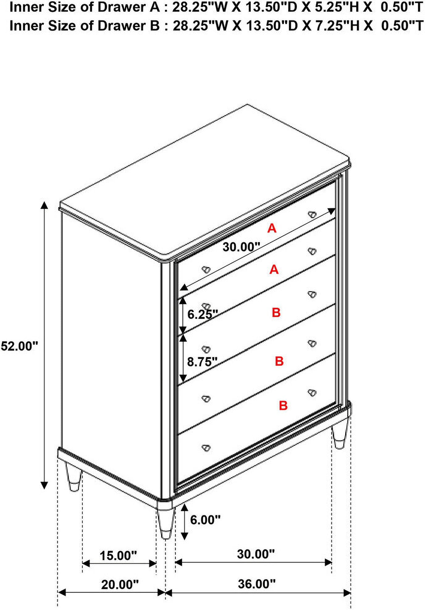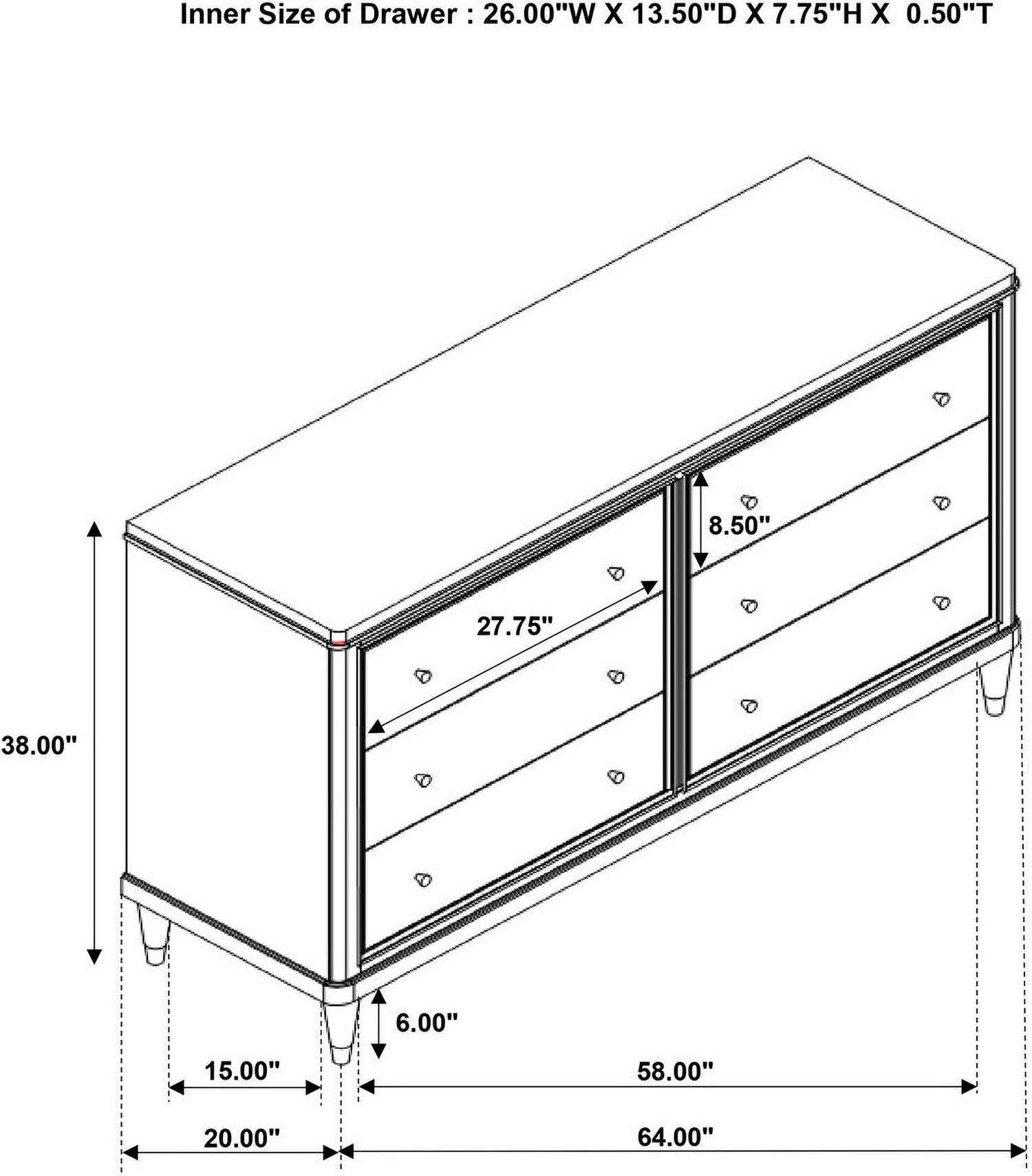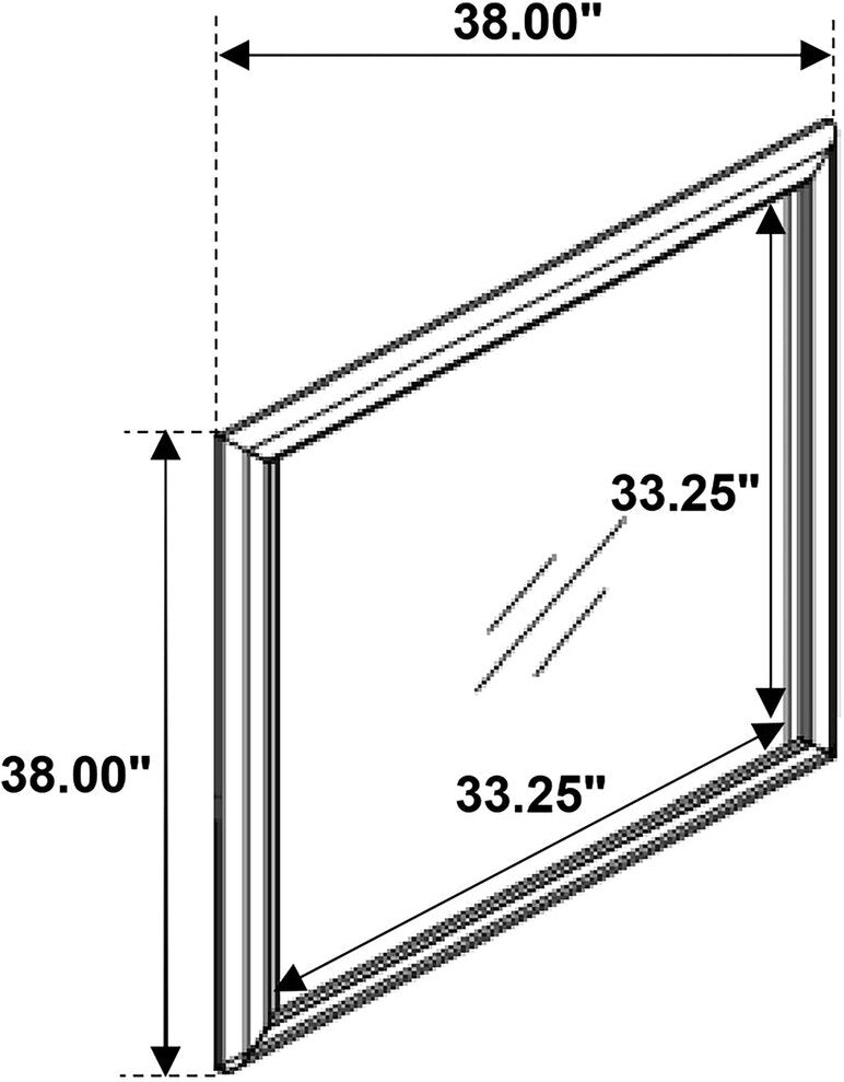 - Dresser Mirror: 38.25"W x 1.25"D x 38.25"H