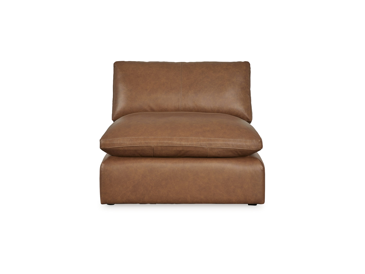 Series Features: Modular leather sectional with all sides finished and no connectors, so each piece can float anywhere in a room. Upholstered in a semi aniline caramel leather with leather match. Attached seat cushions with loose, non-reversible back cushions with perforated material to allow for breath ability of the leather. Loose feather/fiber blend arm bolster pillow to enhance comfort with perforated material on the back of the pillows for breath ability. Seat cushions with feather/fiber blend encasing a foam core and non-skid legs.