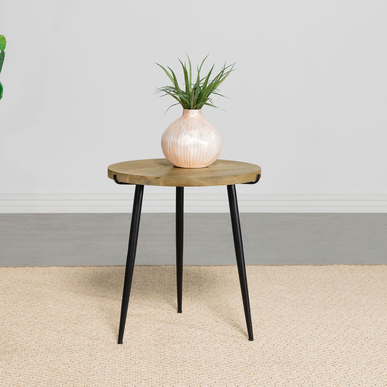 - Item Name: Pilar Round Solid Wood Top End Table Natural and Black