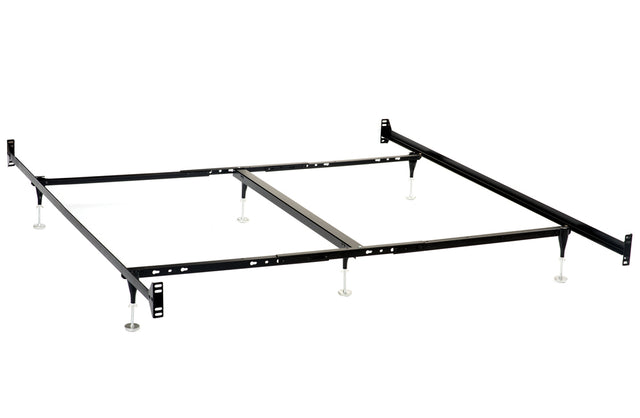 Make any bed ensemble start on good footing. This bed frame is an ideal choice for a bed with a headboard and footboard. Designed to support, it offers a two-inch center beam. Bolt-on construction assures good positioning. Six legs with adjustable glides secure easy movement.