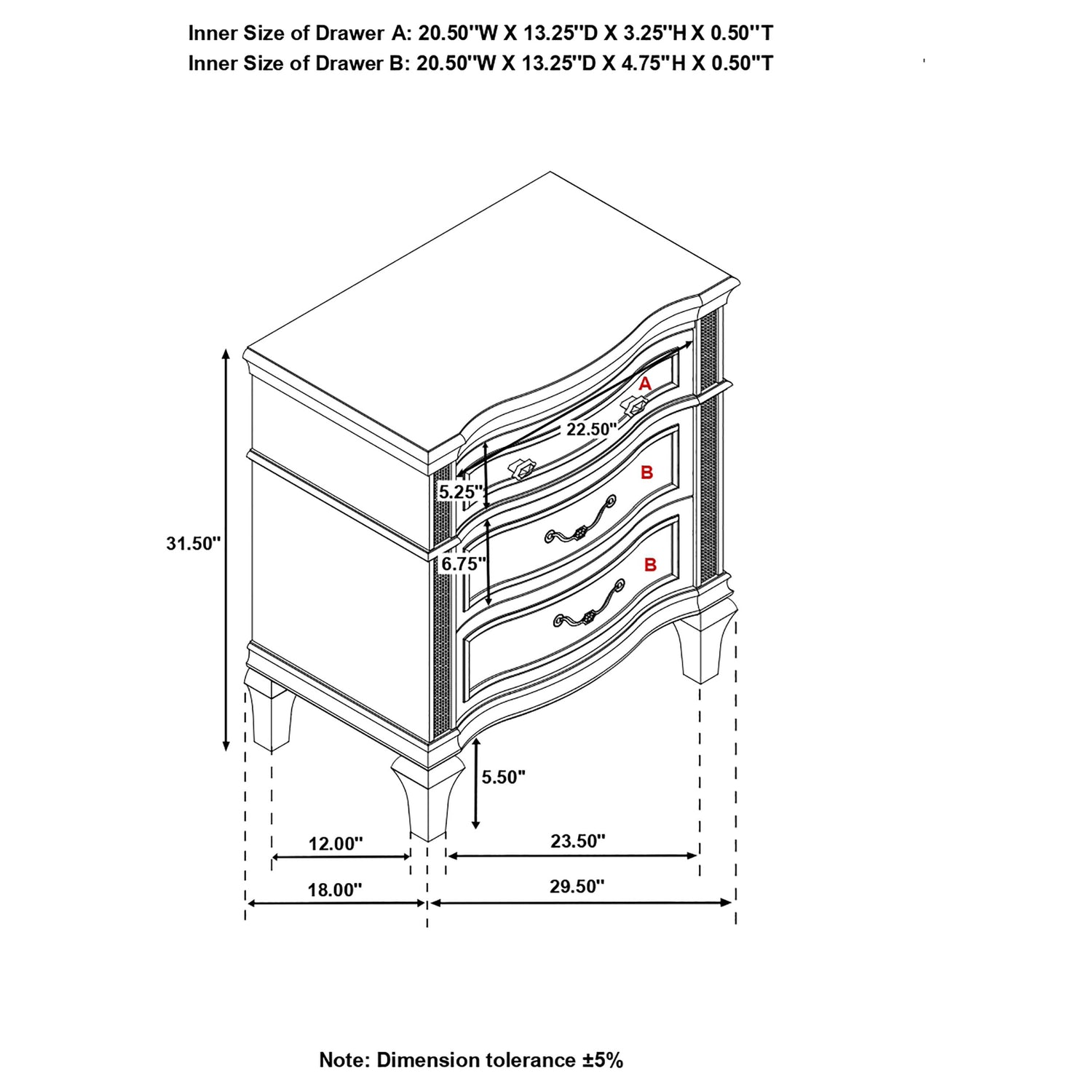 - Item Name: Evangeline 3-drawer Nightstand Silver Oak