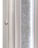Create an instantaneous vanity setup with this elegant, glam, framed mirror. A double arched design crowns the top, offering curvaceous sweeping lines. The silver oak finished molded frame offers an eye-catching dimension that lends a stately presence when mounted above dressers. Glittering side panels elevate the look into a luxurious statement piece. Tucked within the classic and curved frame is a beveled mirror that offers extra depth to the overall look of this stylish glam bedroom piece.