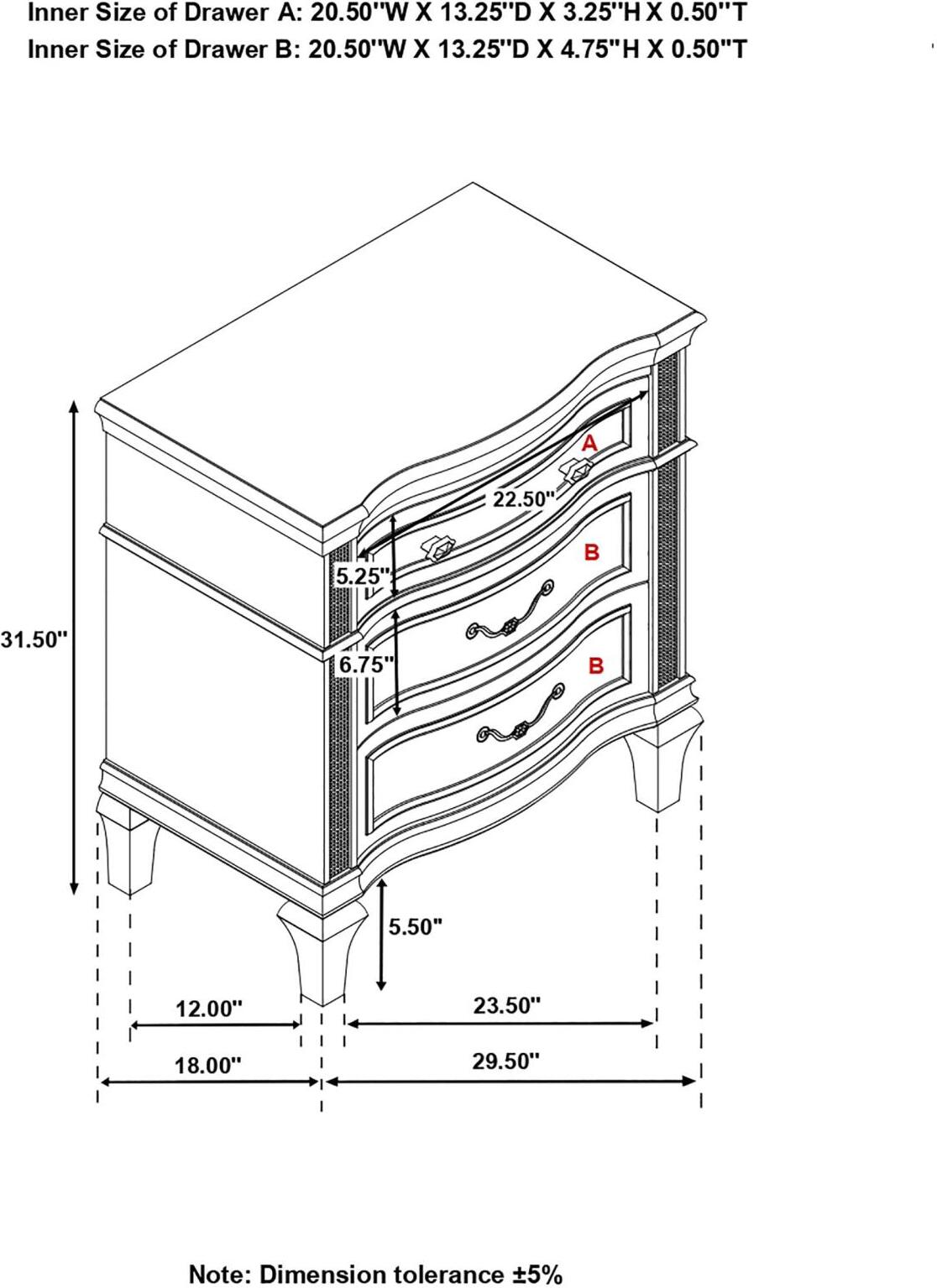 - Nightstand: 29.75"W x 18"D x 31.5"H