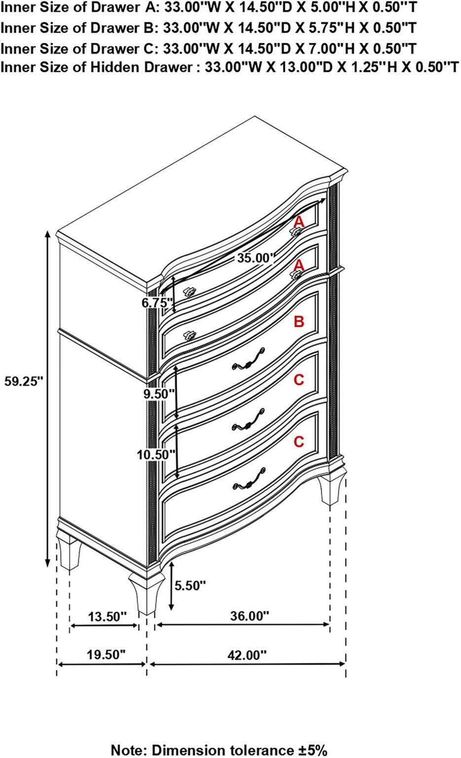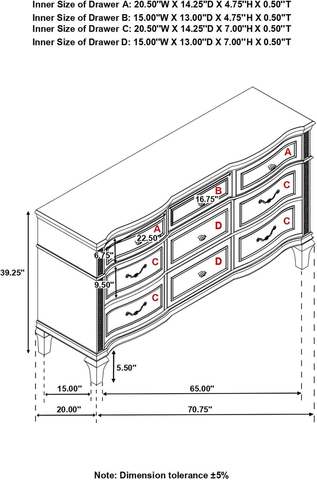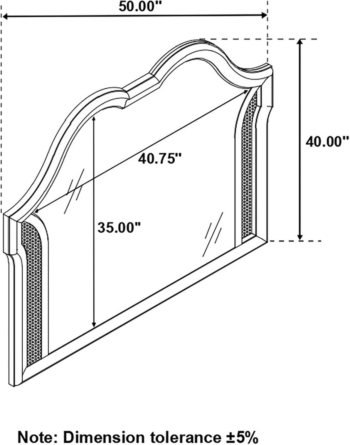 - Dresser Mirror: 50"W x 2"D x 40.25"H