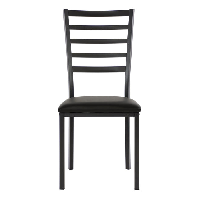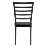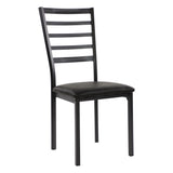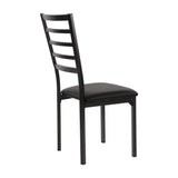 The flannery collection will provide the look and style you choose in your home. the scale of the collection makes it suitable for a variety of eating areas with a smaller footprint. the contrast between the black finish on the frame and the imitation leather seat gives the ladder-back chair a transitional vibe. this effect is due to the chair having a black finish on both the frame and the seat.