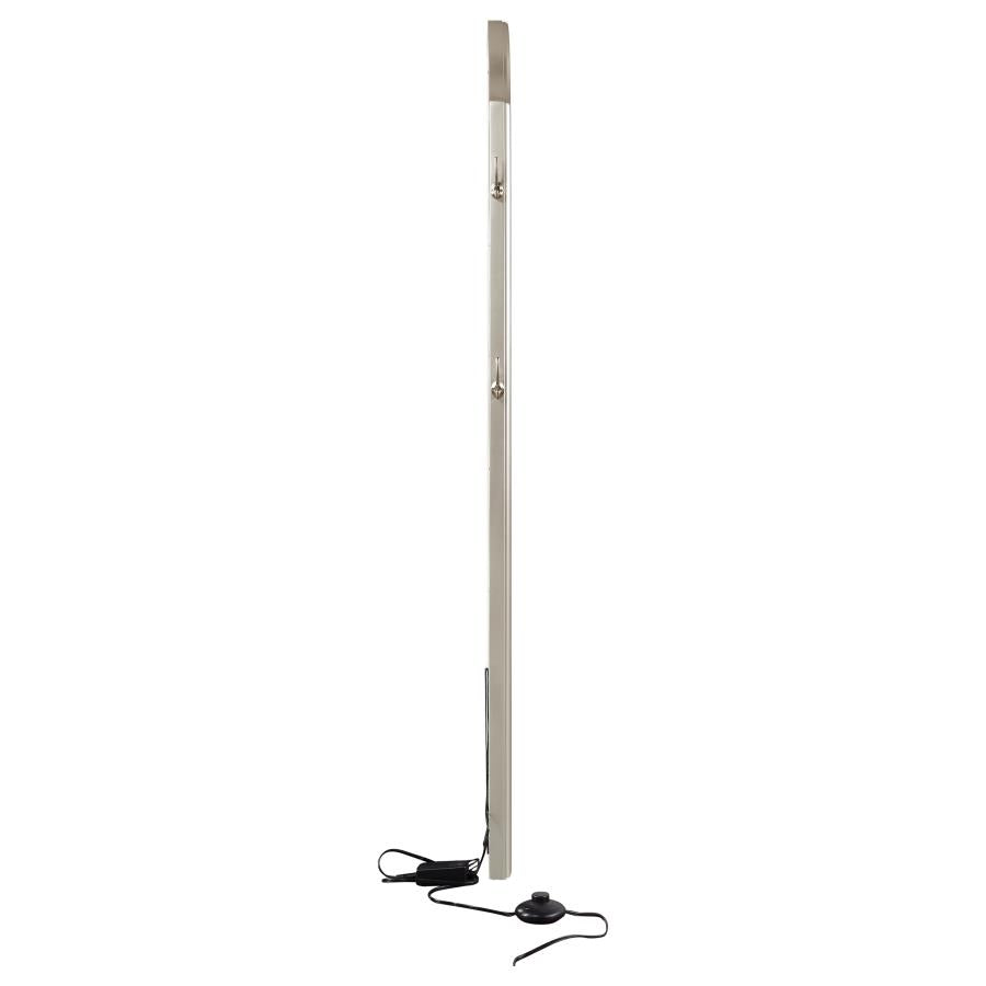 Chic couture style is a featured element of a lighted LED floor mirror well suited to fashionable living spaces. The Evangeline floor mirror offers a shapely silhouette with an arch top and rectangular profile. Its pine wood frame offers a silver oak finish, delightful and decadent. Side hangers add convenience, and LED lighting on its mirrored section is both mood-inducing and functional. A floor switch operates this glam-inspired mirror.