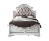 Florian Beige Synthetic Leather & Antique White Finish Queen Bed
