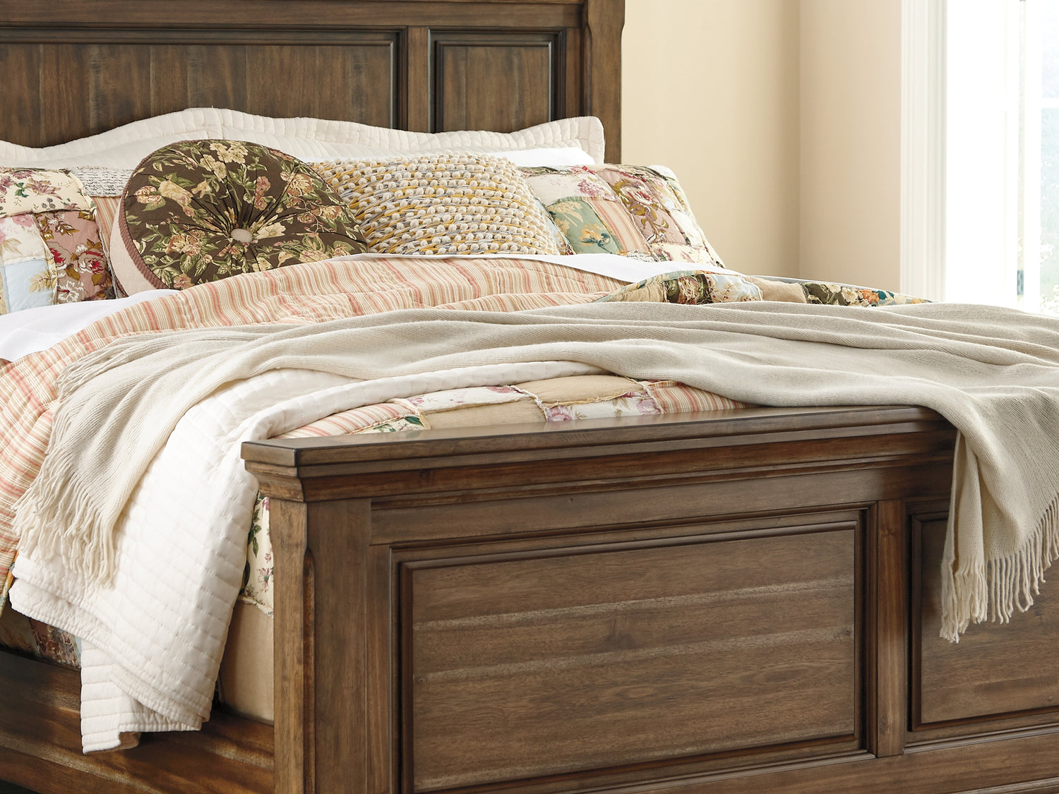 Flynnter Medium Brown King Panel Bed, Dresser, Mirror And 2 Nightstands