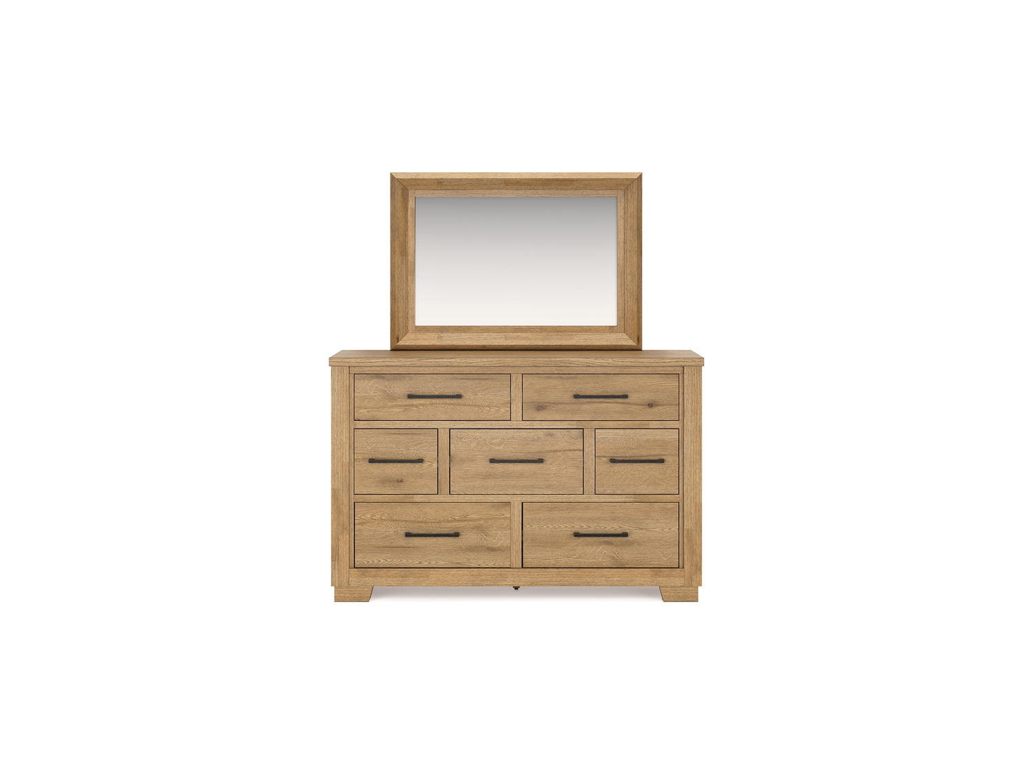 Galliden Light Brown California King Panel Bed, Dresser And Mirror is backordered and will ship as soon as it is back in stock.