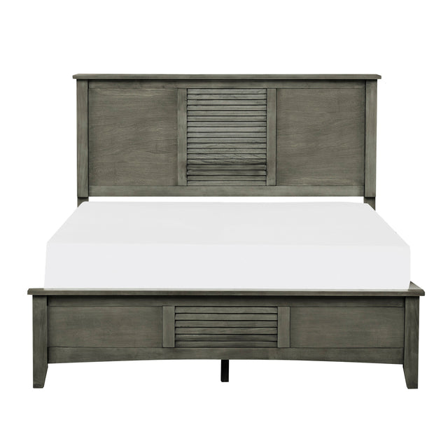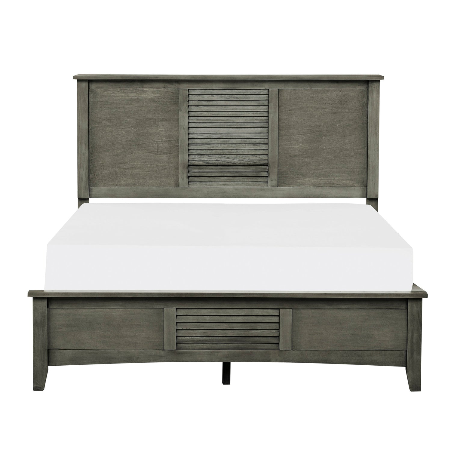 The garcia collection is an option for your bedroom that features a transitional style. designed for flexible placement in a variety of settings, the california king's louvered panel accent on the headboard, unique frame, and a cool gray finish, over birch veneer, combine to provide a clean palette for your personal decorative style. this bed was created for use in a number of different locations.