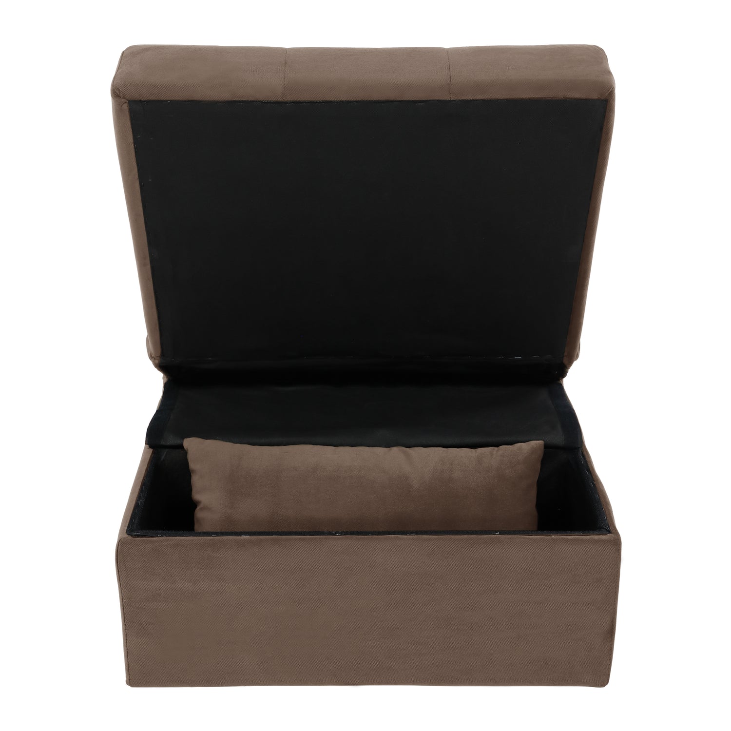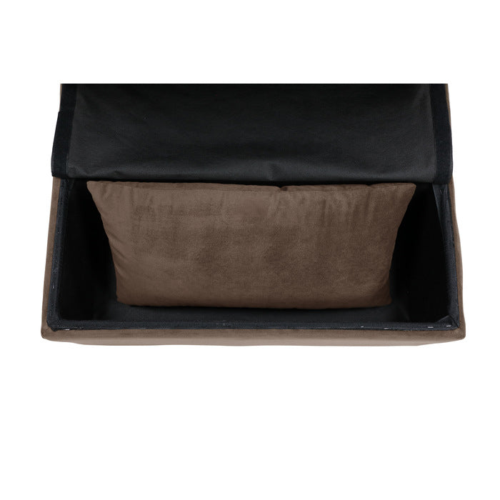 Garrell Brown Velvet Lift Top Storage Bench with Pull-out Bed